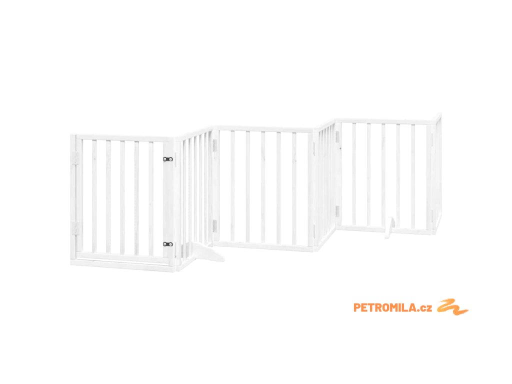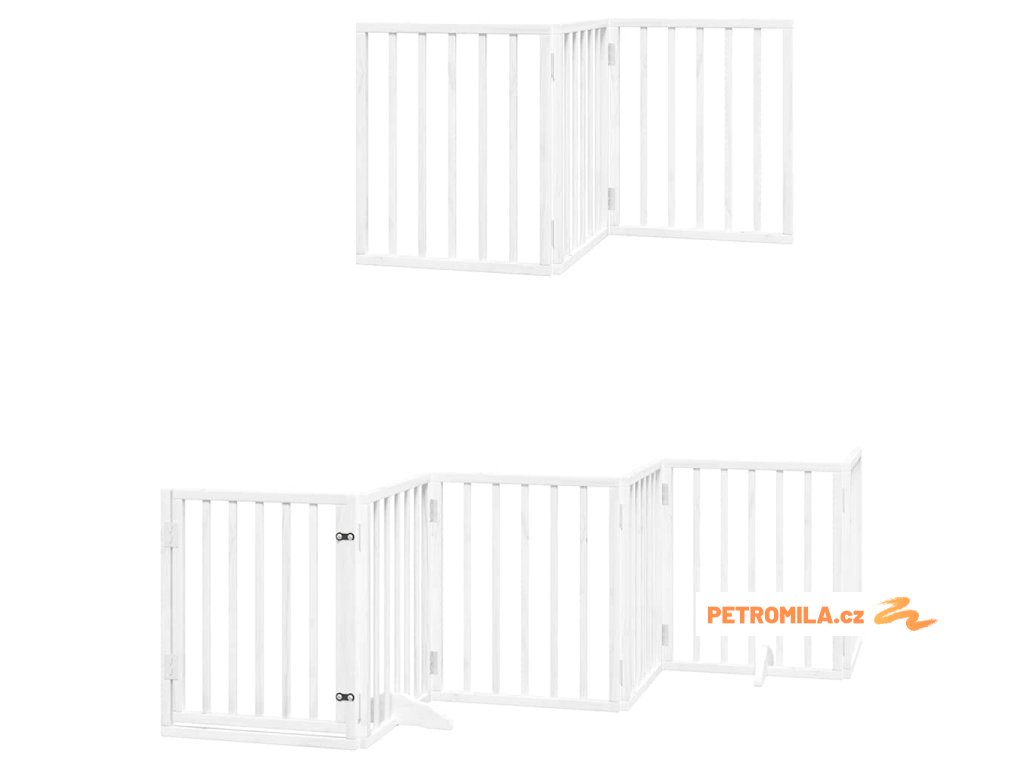 Zábrana pro psy s dvířky skládací 15 panelů bílá 750 cm topol