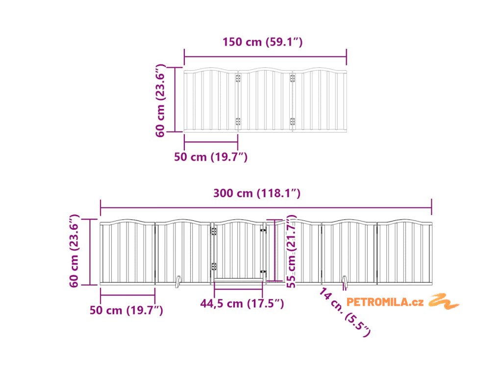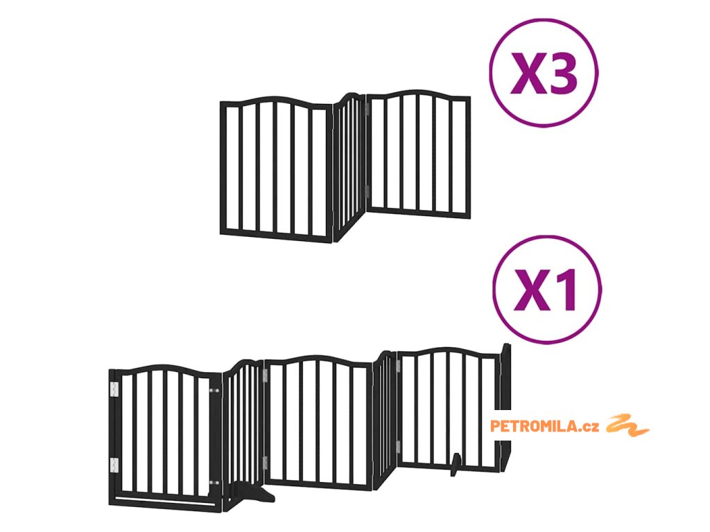 Zábrana pro psy s dvířky skládací 15 panelů černá 750 cm topol