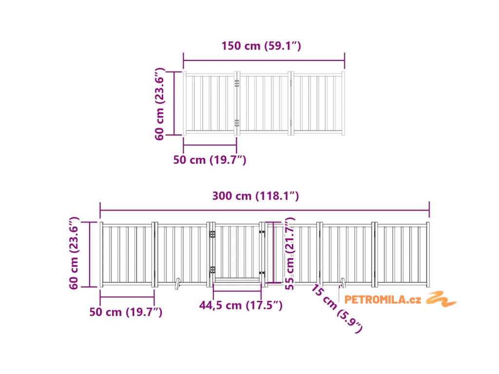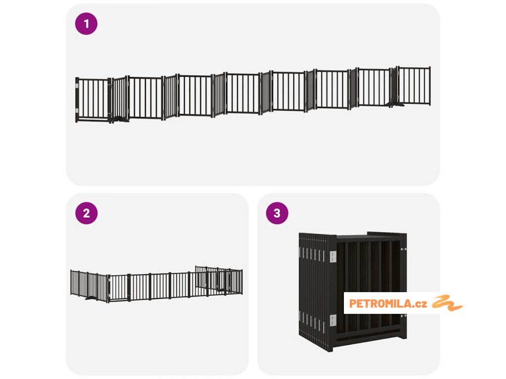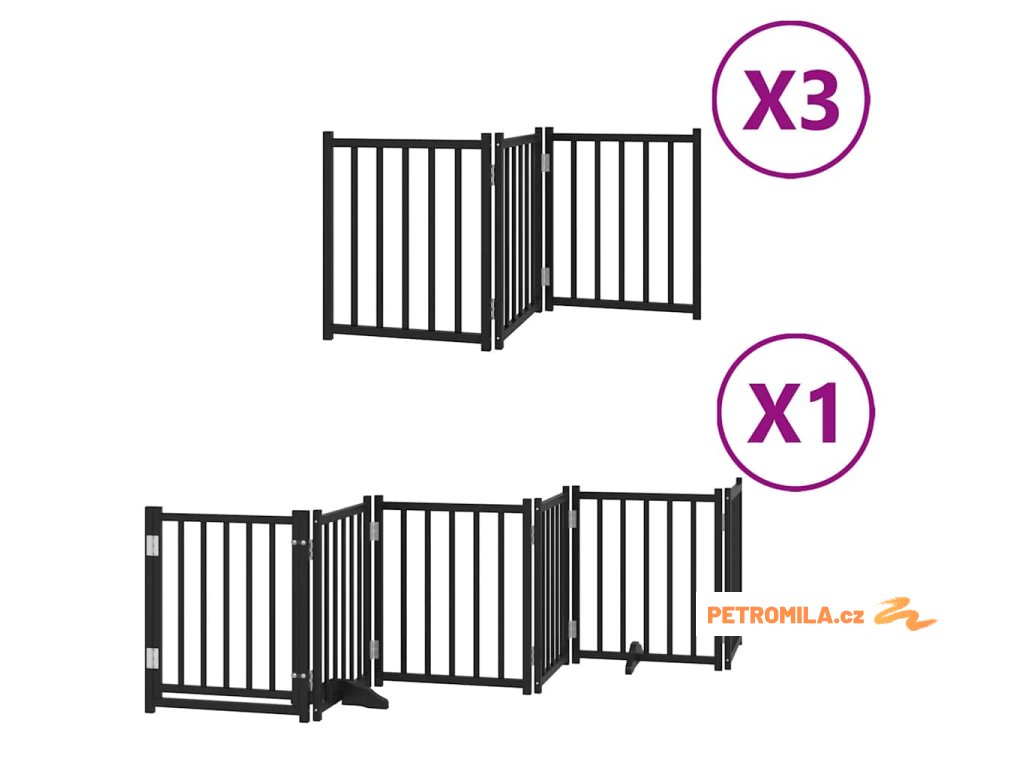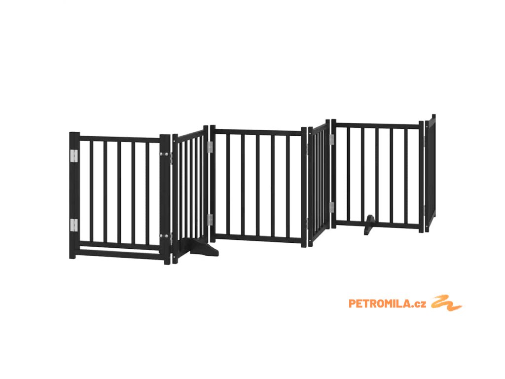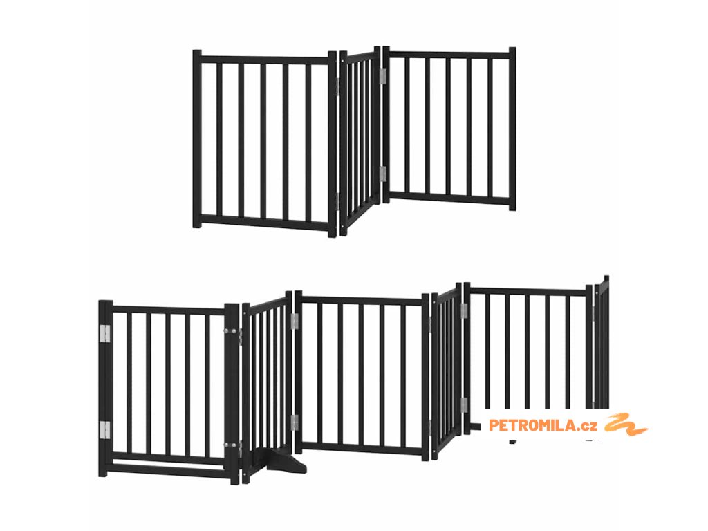 Zábrana pro psy s dvířky skládací 15 panelů černá 750 cm topol