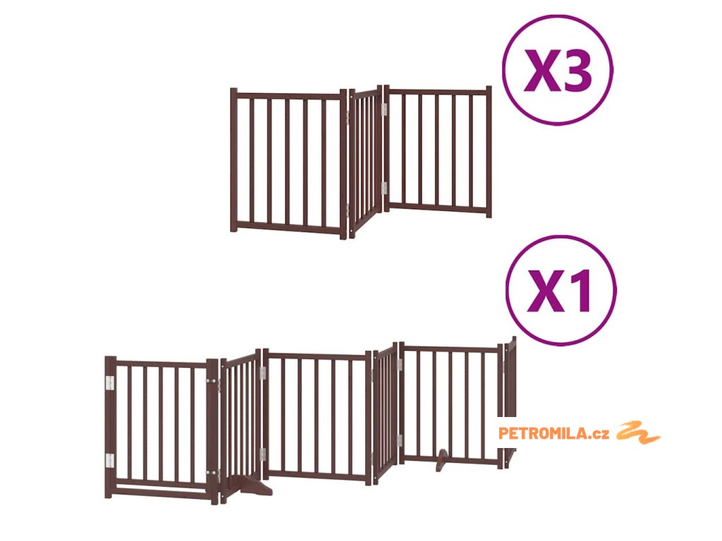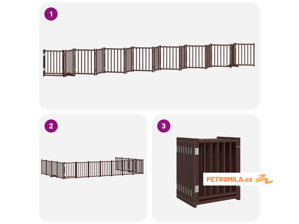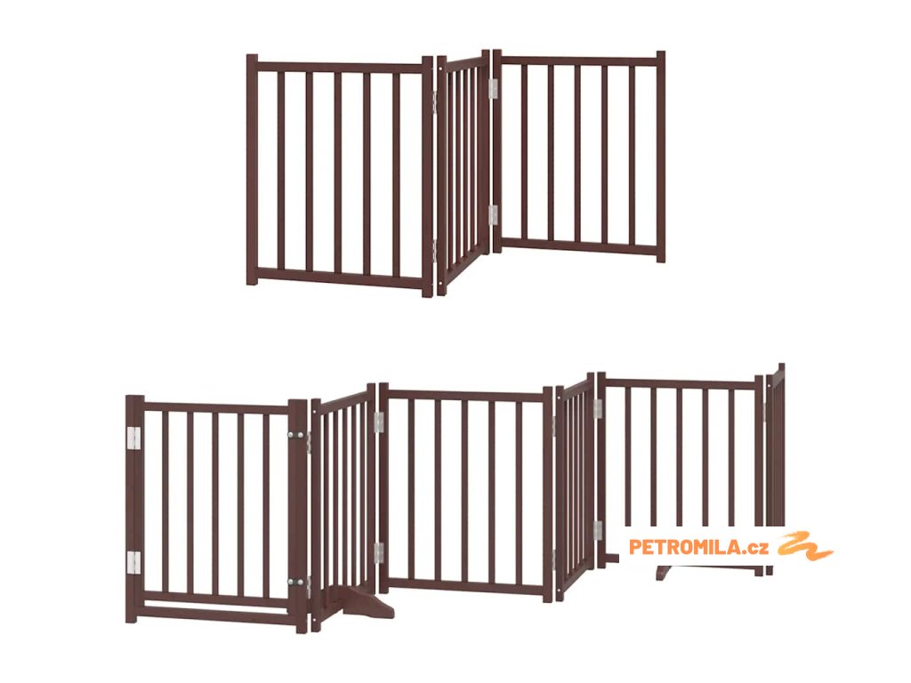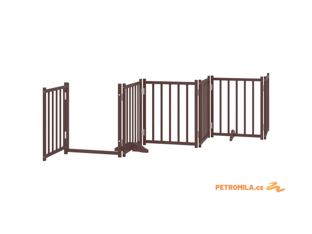 Zábrana pro psy s dvířky skládací 15 panelů hnědá 750 cm topol