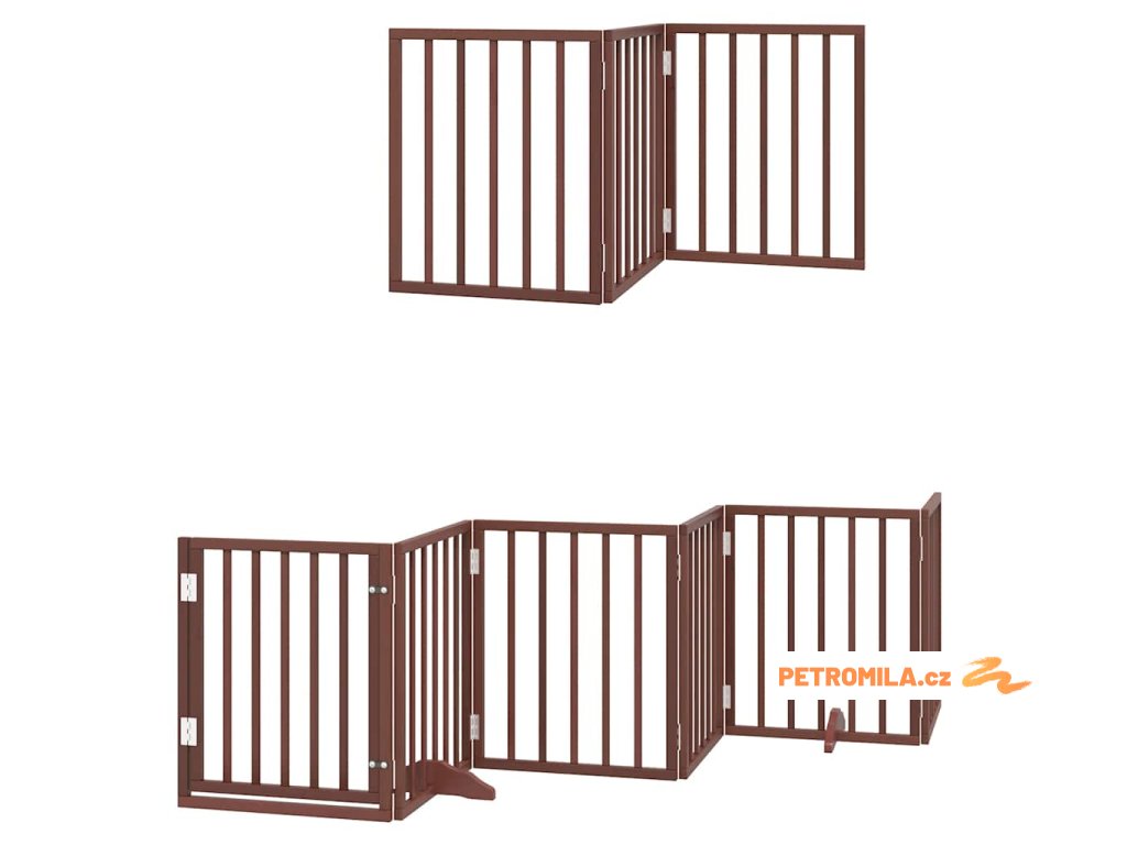 Zábrana pro psy s dvířky skládací 15 panelů hnědá 750 cm topol