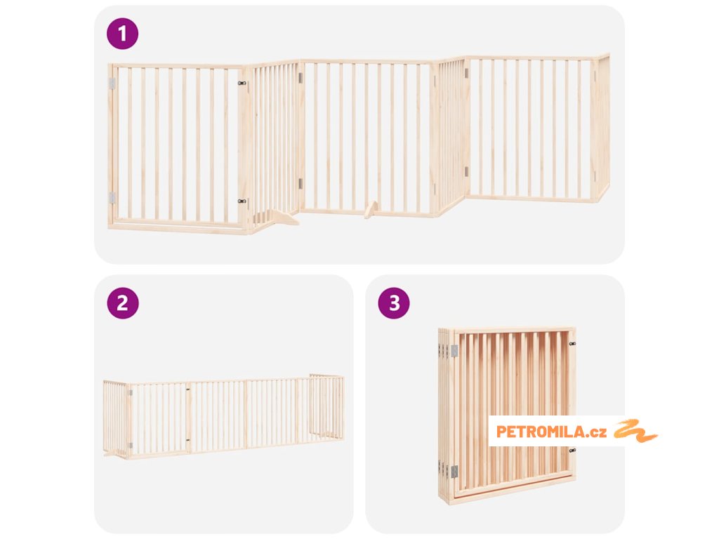 Zábrana pro psy s dvířky skládací 6 panelů 480 cm topol