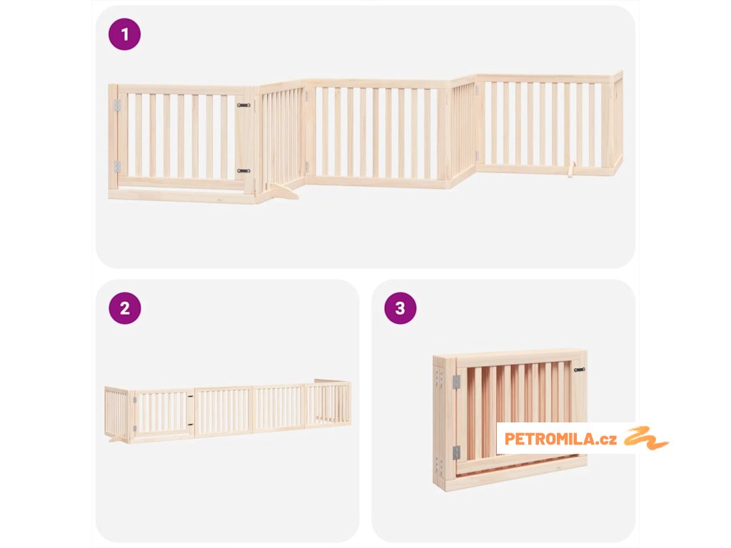 Zábrana pro psy s dvířky skládací 6 panelů 480 cm topol