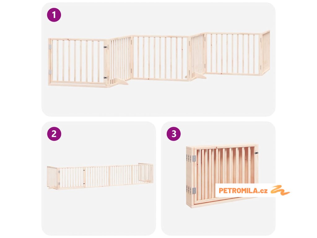 Zábrana pro psy s dvířky skládací 6 panelů 480 cm topol