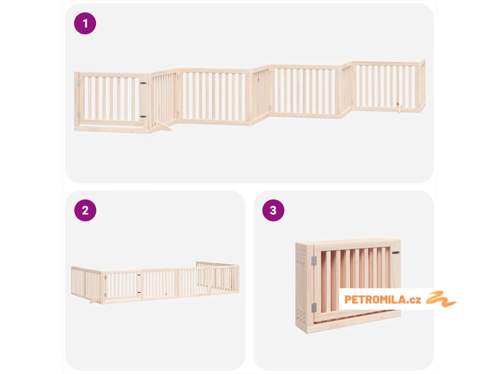 Zábrana pro psy s dvířky skládací 8 panelů 640 cm topol