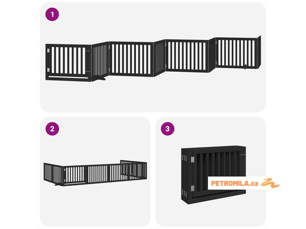 Zábrana pro psy s dvířky skládací 8 panelů černá 640 cm topol