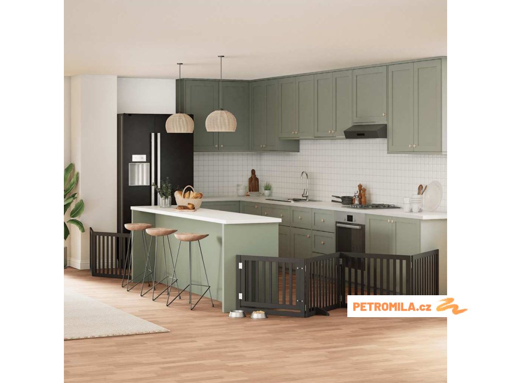 - Praktický design: Psí zábrana je vybavena dvěma pevnými nožičkami, které zajišťují stabilitu a umožňují snadné nastavení. Kromě toho obsahuje dveřní panel a je vybavena zámky, takže poskytuje větší bezpečnost i praktičnost pro vás i vaše mazlíčky.