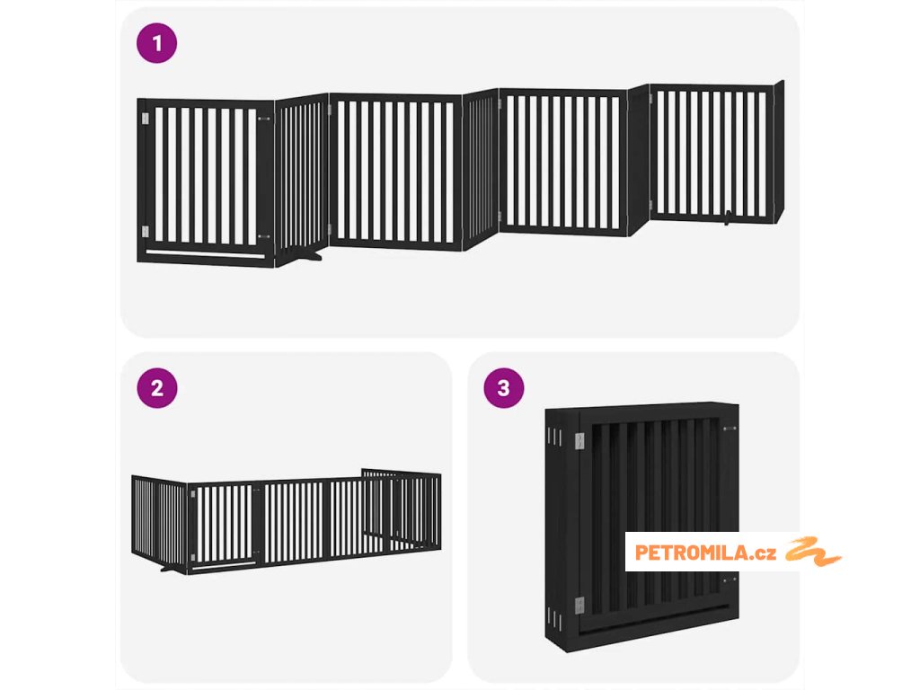 Zábrana pro psy s dvířky skládací 8 panelů černá 640 cm topol
