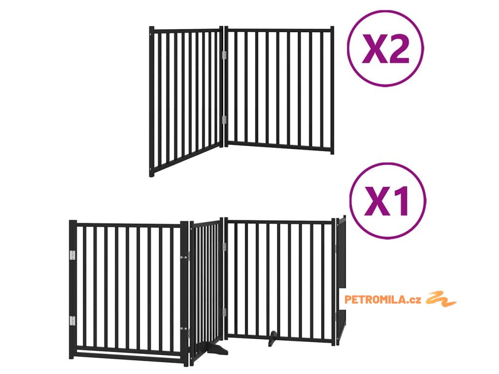 Zábrana pro psy s dvířky skládací 8 panelů černá 640 cm topol