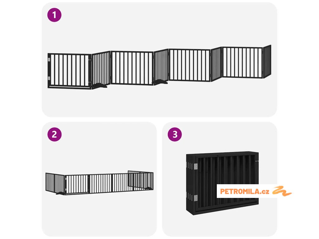 - Praktický design: Psí zábrana je vybavena dvěma pevnými nožičkami, které zajišťují stabilitu a umožňují snadné nastavení. Kromě toho obsahuje dveřní panel a je vybavena zámky, takže poskytuje větší bezpečnost i praktičnost pro vás i vaše mazlíčky.