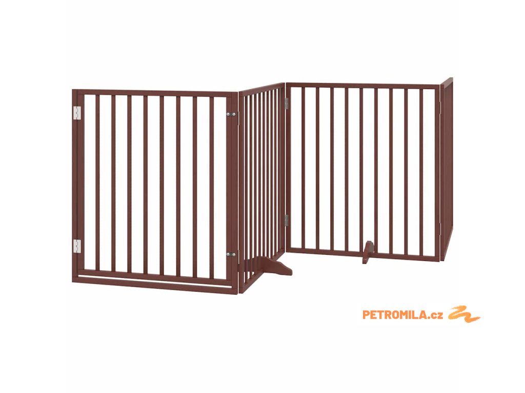 Zábrana pro psy s dvířky skládací 8 panelů hnědá 640 cm topol