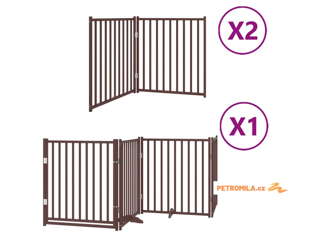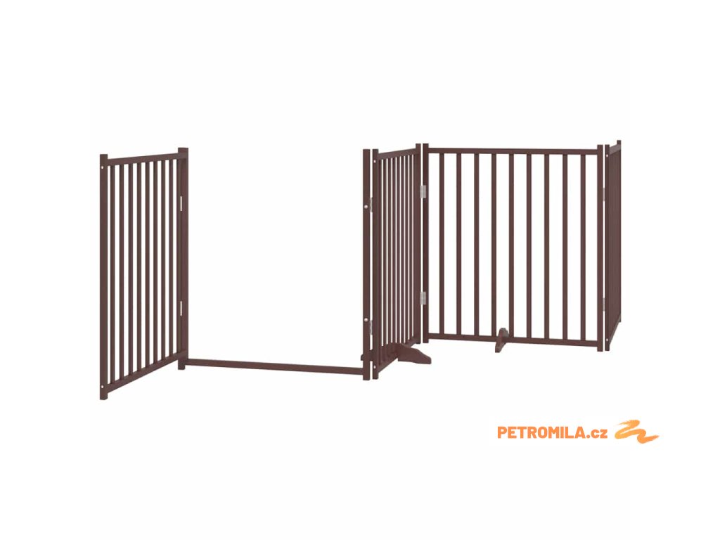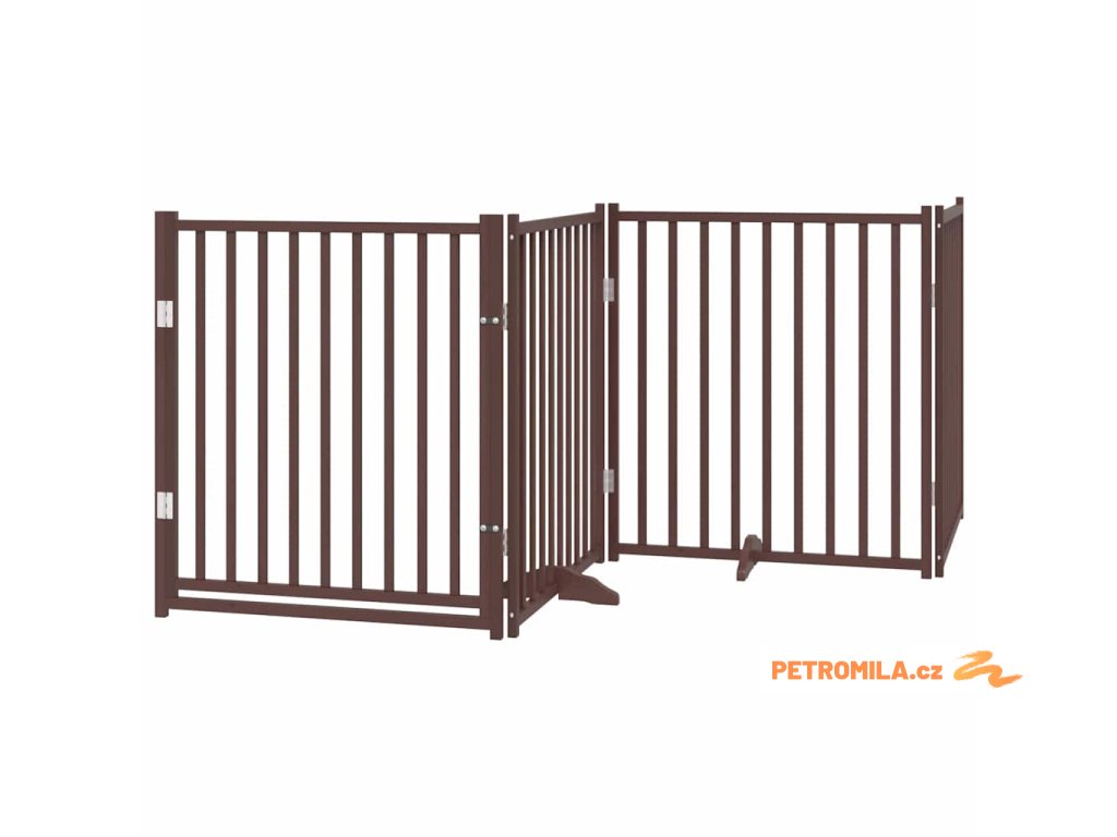 Zábrana pro psy s dvířky skládací 8 panelů hnědá 640 cm topol