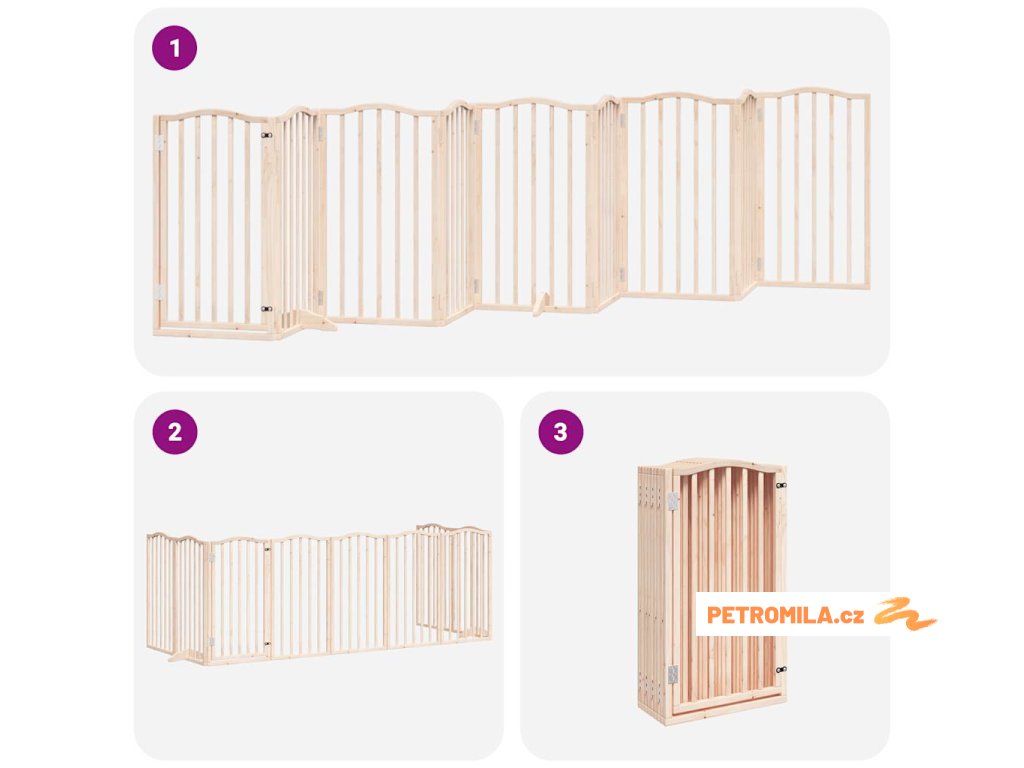 Zábrana pro psy s dvířky skládací 9 panelů 450 cm topol