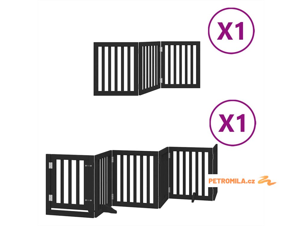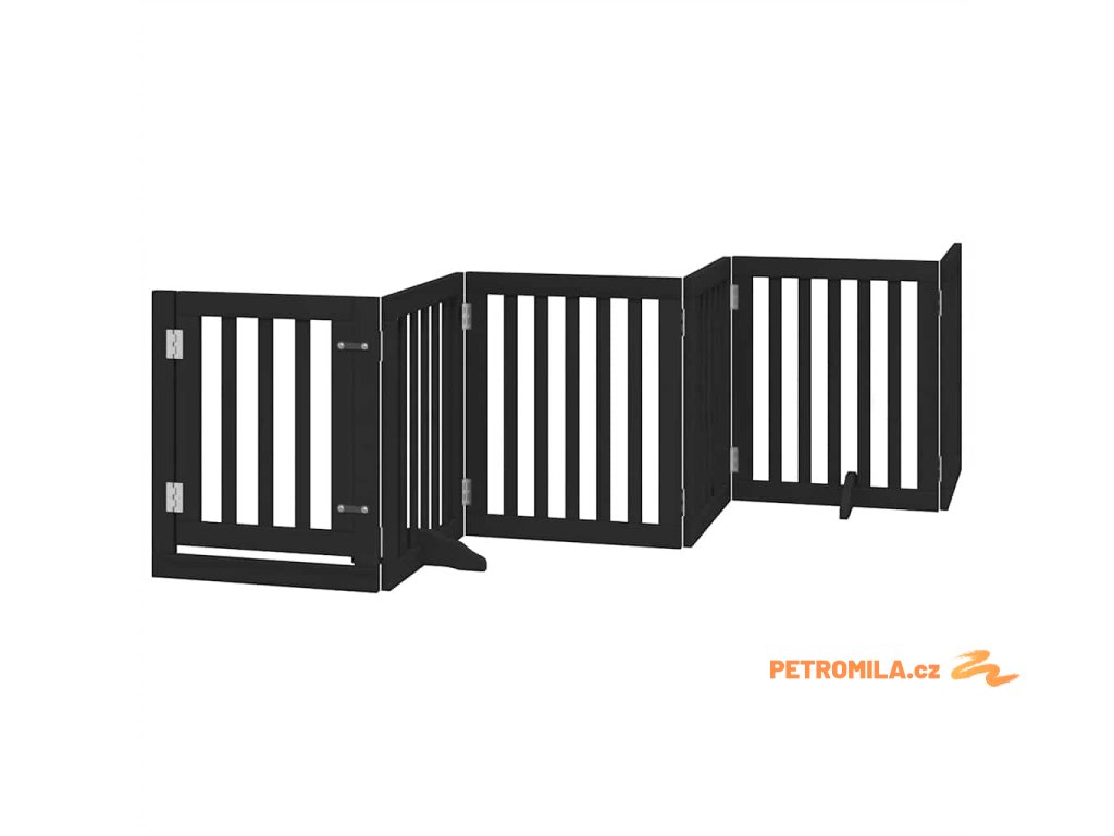 Zábrana pro psy s dvířky skládací 9 panelů černá 450 cm topol