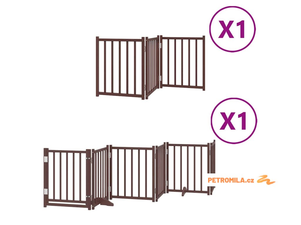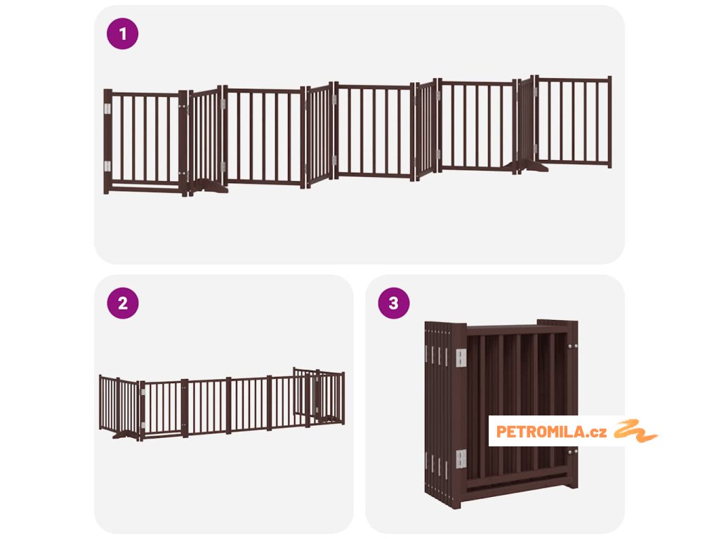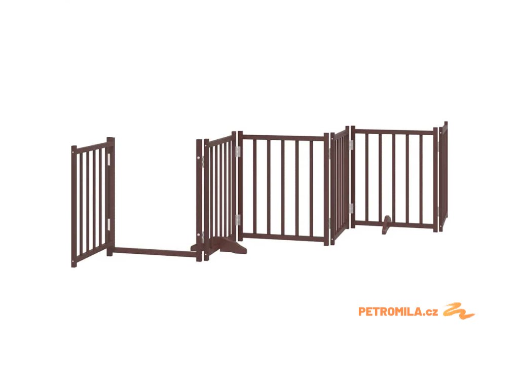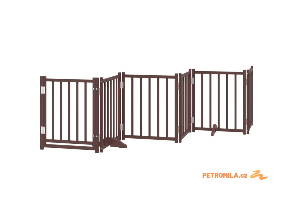 Zábrana pro psy s dvířky skládací 9 panelů hnědá 450 cm topol