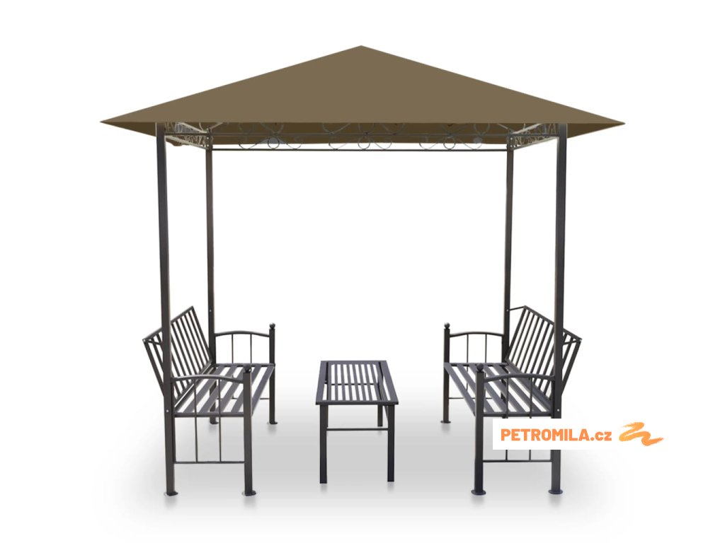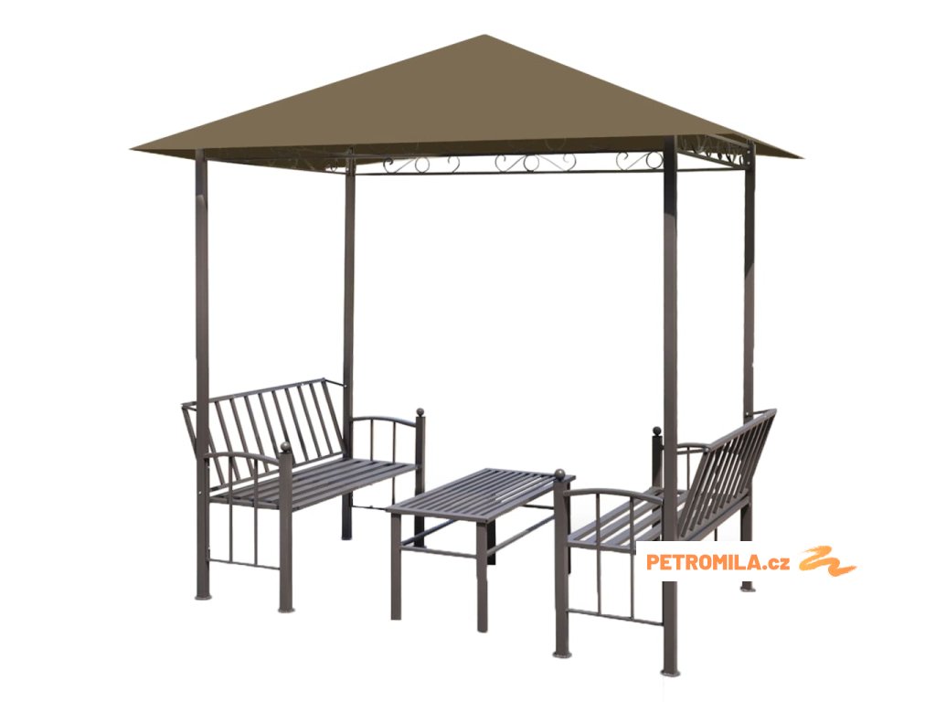 Tento vkusný altán dodáváme spolu se stolkem a lavicemi. Sada vaší zahradě dodá nádech elegance.