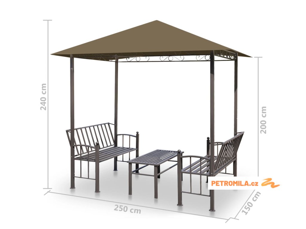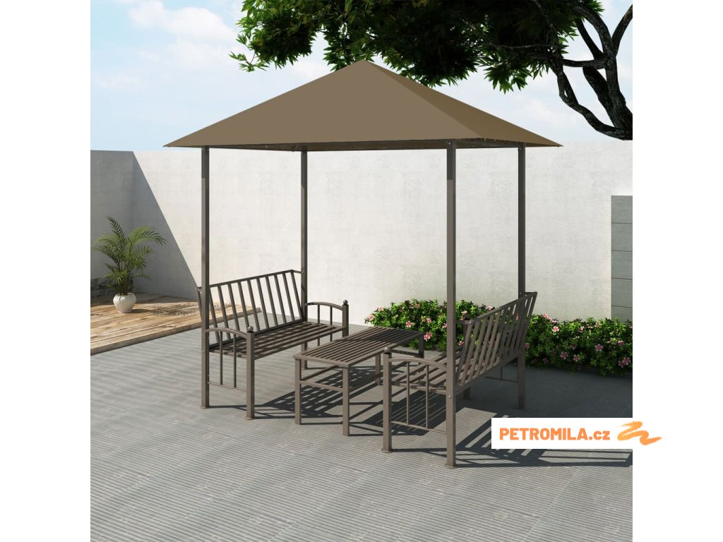 Zahradní altán + stůl a lavice 2,5x1,5x2,4 m taupe 180 g/m²