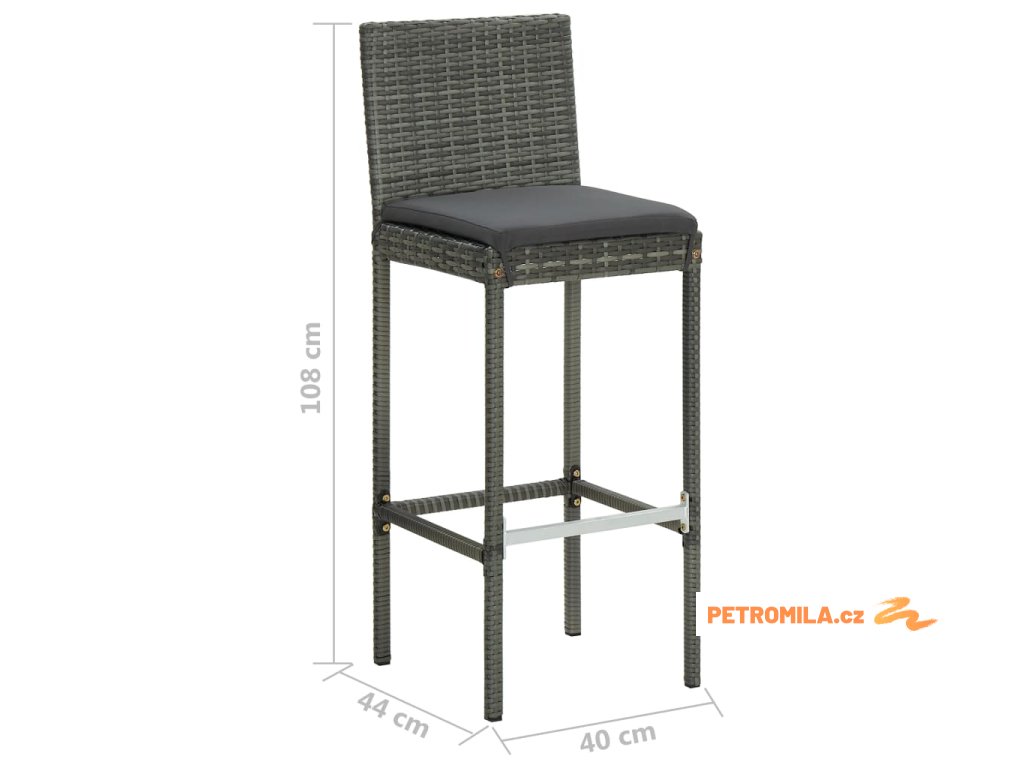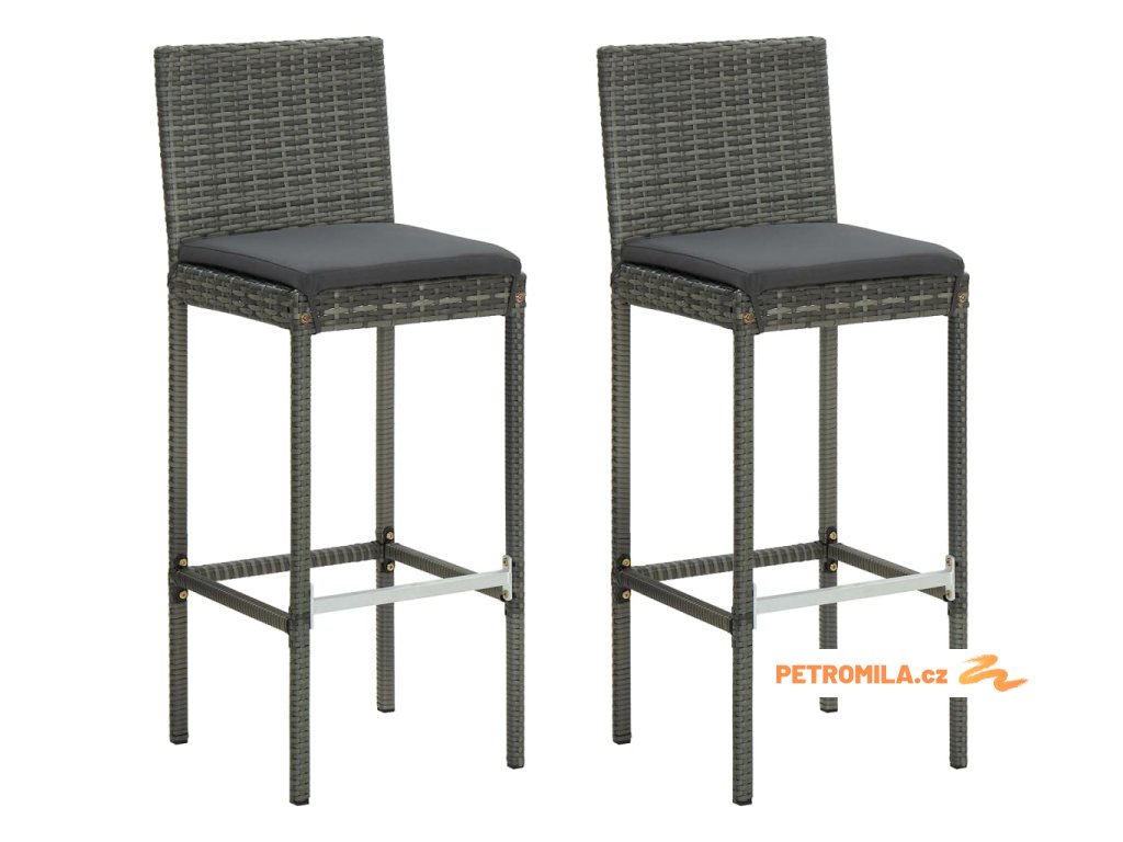 Zahradní barové stoličky s poduškami 2 ks šedé polyratan