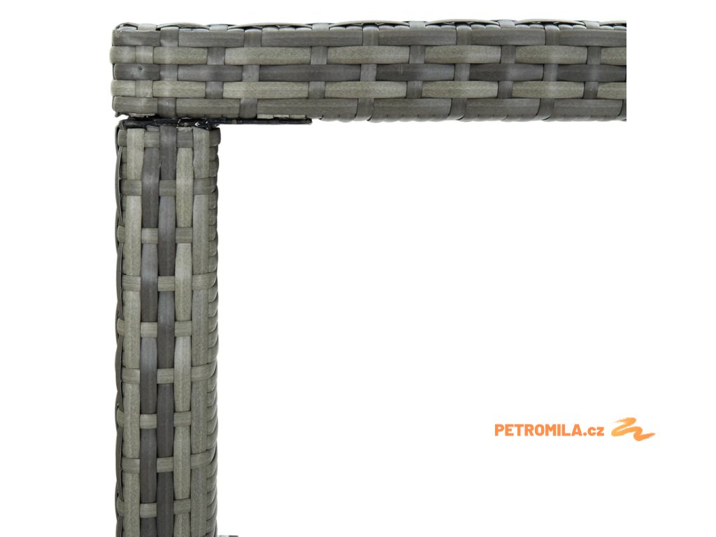 - Materiál: PE ratan, práškově lakovaná ocel, tvrzené sklo