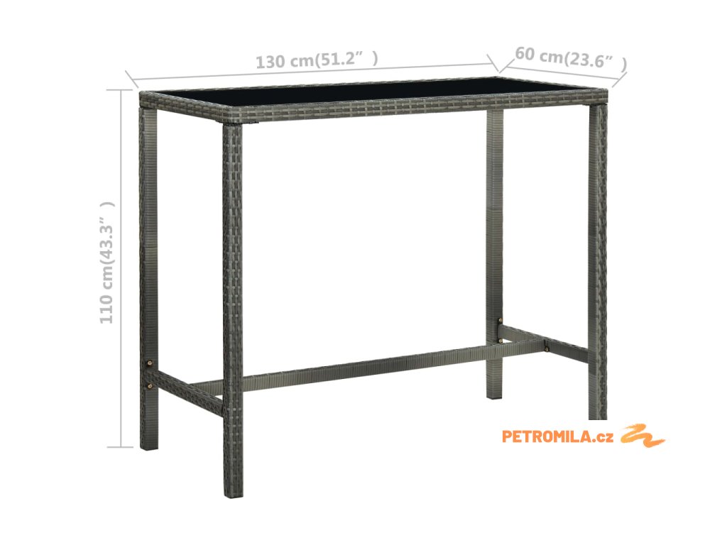Zahradní barový stůl šedý 130 x 60 x 110 cm polyratan a sklo
