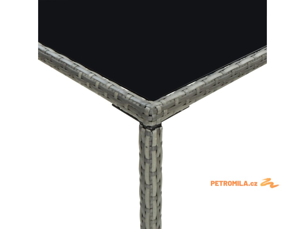 - Materiál: PE ratan, práškově lakovaná ocel, tvrzené sklo