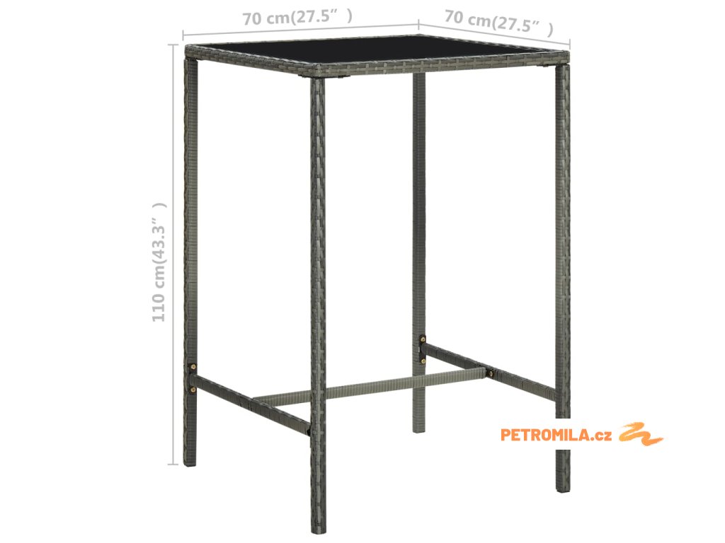Zahradní barový stůl šedý 70 x 70 x 110 cm polyratan a sklo