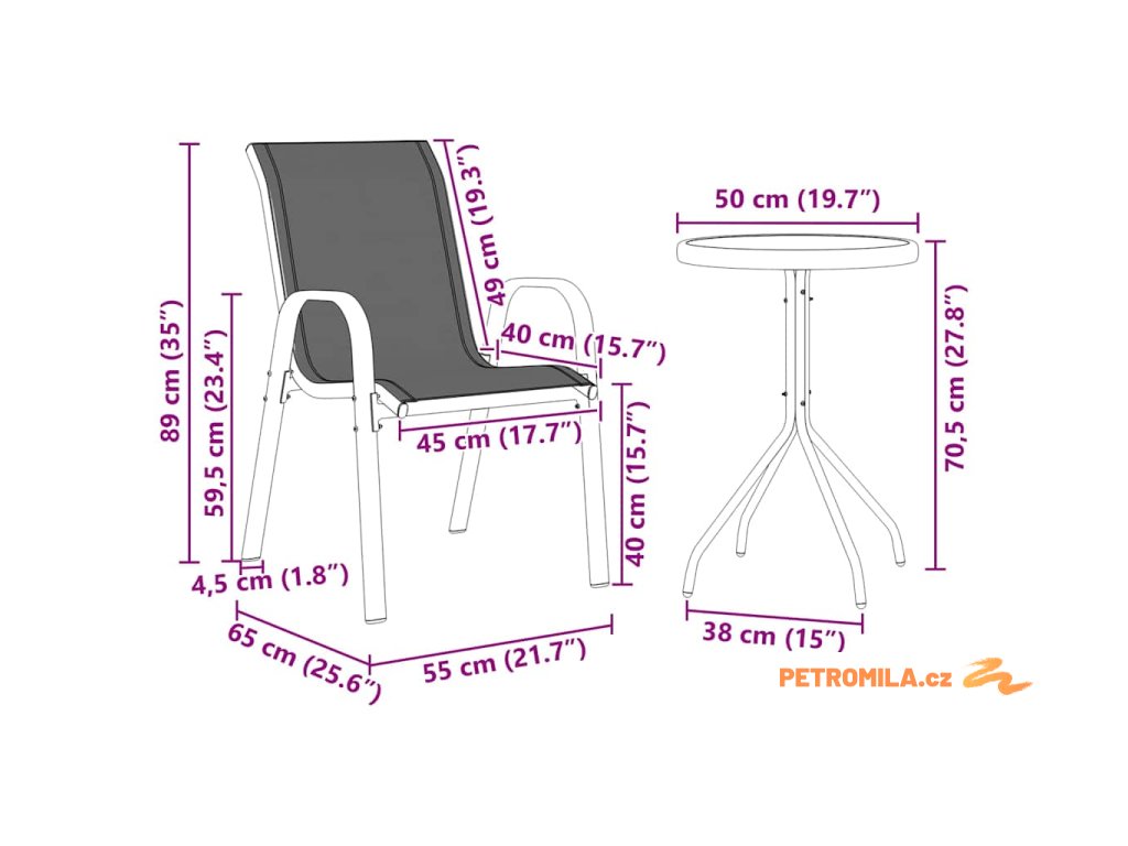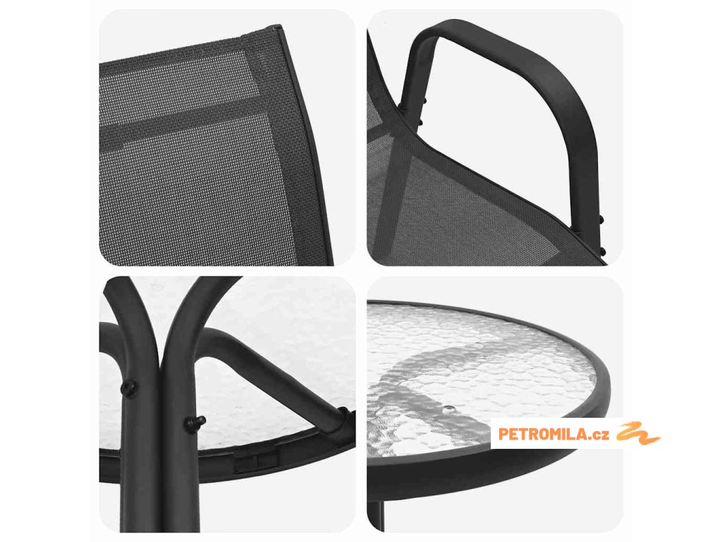 - Moderní design: Díky čistým, jednoduchým liniím je bistro set opravdu univerzální. Snadno se přizpůsobí jakékoli venkovní dekoraci a vytváří pohodlnou atmosféru pro relaxaci.