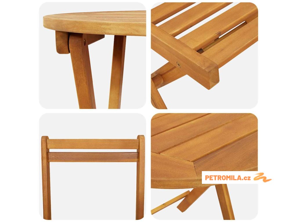 Tahle krásná dřevěná zahradní bistro souprava oživí jakoukoli venkovní plochu svým minimalistickým a elegantním designem. Je to přesně to, suitable for co potřebujete na zahrady a terasy, vytváří poklidnou a příjemnou atmosféru pro venkovní jídlo nebo klidné lenošení. Se svými čistými, elegantními liniemi a přírodním vzhledem výborně padne ke všem typům venkovní dekorace, což ji dělá skvělou volbou pro každého, kdo má rád jednoduchý a funkční nábytek. A její robustní konstrukce z masivního akáciového dřeva znamená, že je odolná a dlouho vám vydrží.
