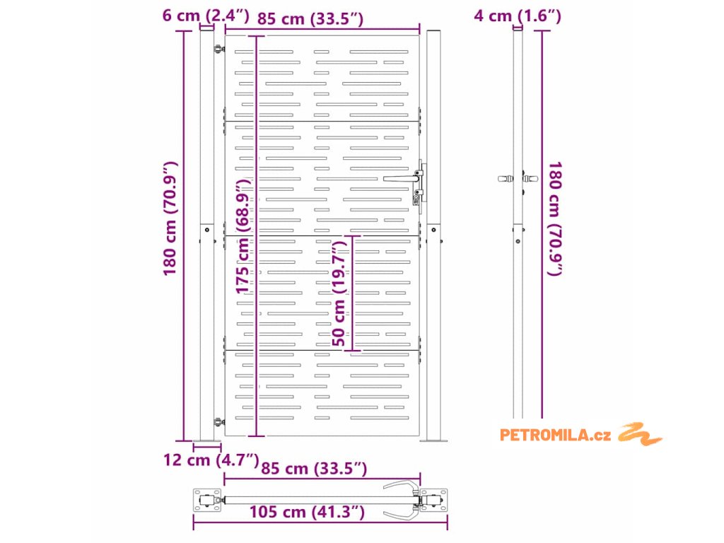 Zahradní brána, Zahradní Brána 105x75 cm Corten Ocel Čtvercový Design