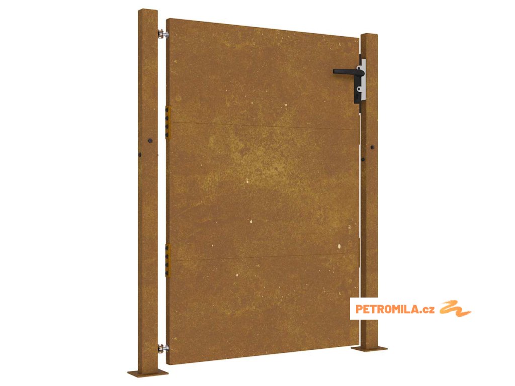 - Materiál s dlouhou životností: Kovová branka je vyrobená z cortenové oceli. Cortenová ocel, také známá jako povětrnostně odolná ocel. Je ze své podstaty antikorozní. Při prvním vystavení atmosférickým podmínkám se na ní vytvoří rezavá ochranná vrstva proti korozi. Nemusíte ji tedy natírat. Tím ušetříte náklady na údržbu a opravy. Výrazný hnědý odstín cortenové oceli jistě upoutá pozornost. Povětrnostně odolná ocel je výjimečně odolná a obstojí ve zkoušce času.