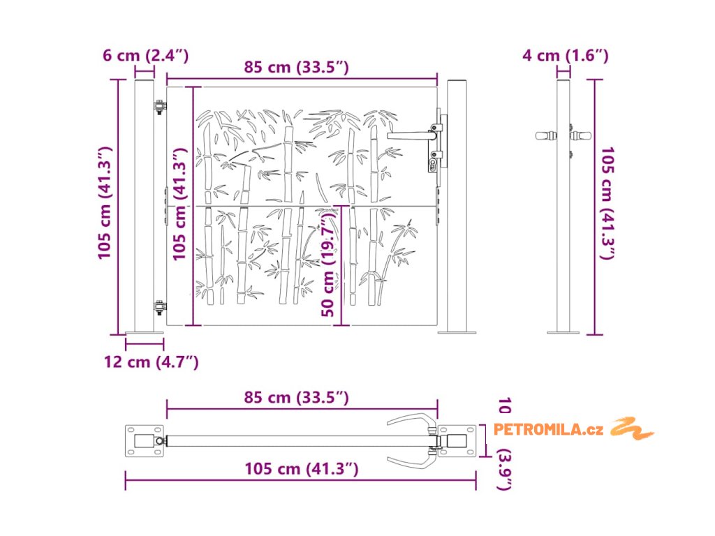 Tahle zahradní brána je parádní volba, pokud hledáš něco, co spojuje moderní styl s praktickým využitím, idealní pro zahrady a terasy. Obdélníkový tvar a trendy bambusový laserový řez dodávají bráně elegantní a současný vzhled, který se hodí do různých designů. Ať už chceš ozvláštnit vstup do zahrady nebo vytvořit soukromou venkovní plochu, tahle brána ti to splní a přitom zachová skvělý vzhled a bezpečí.