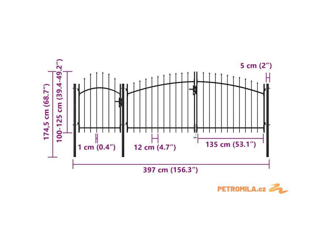 Elegantní zaoblený design naší brány je velmi atraktivní. Silné vodorovné výztuhy zpevňují její rám a zvyšují její bezpečnost. Naše brána tak tvoří nejen působivý vstup na váš pozemek, ale také spolehlivou bariéru. Je vyrobená z oceli a ošetřená práškovým lakem, který ji chrání před rzí a korozí. Zahradní brána je rovněž vybavená zámkem. Dodáváme ji spolu se třemi sloupky s pevnými závěsy pro snadnou instalaci. Součástí dodávky je též zemní otočná zarážka, která umožňuje zajistit obě křídla brány na místě pro větší bezpečnost. Tato branka je skvělou kombinací stylu, pevnosti a stability!
