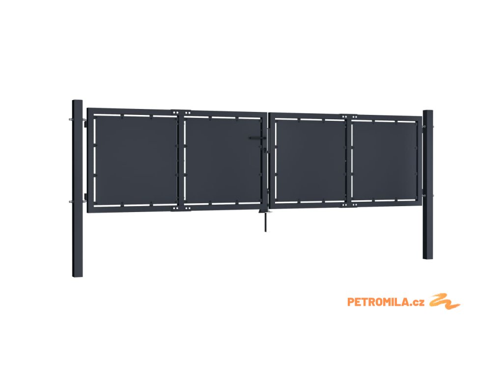 Spolu s bránou obdržíte i sadu zámku, kliku a zemní zarážku.