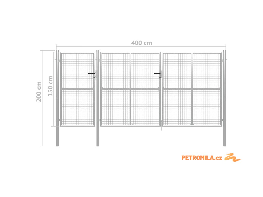 Zahradní brána ocel 400 x 150 cm stříbrná
