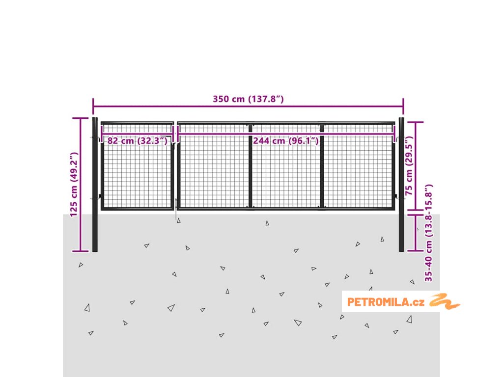 Zahradní brána ocelová 350 x 75 cm antracitová