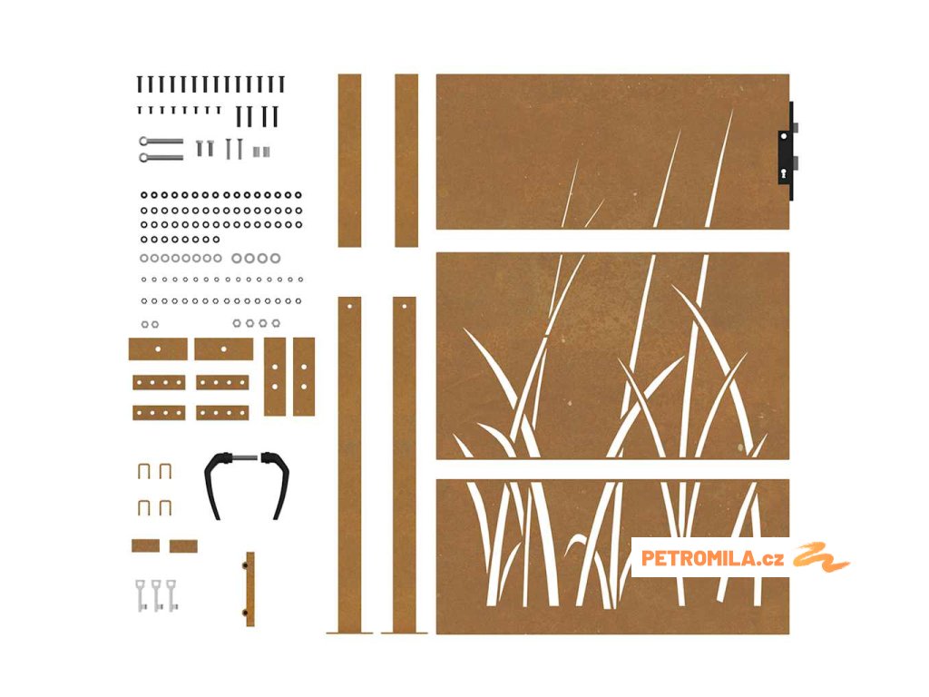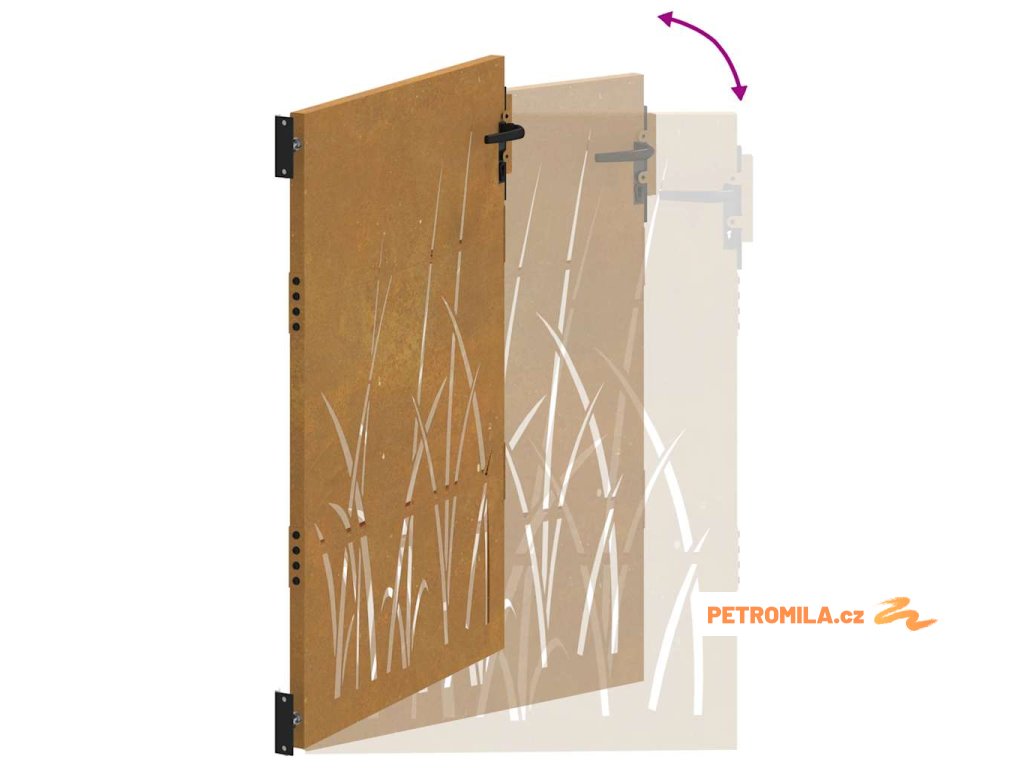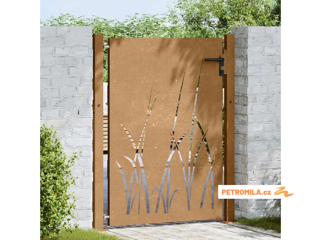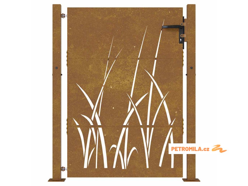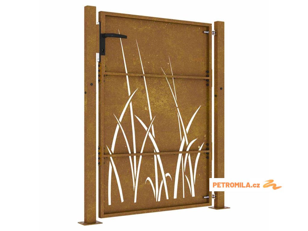 Zahradní branka 100 x 150 cm z cortenové oceli, design s trávou