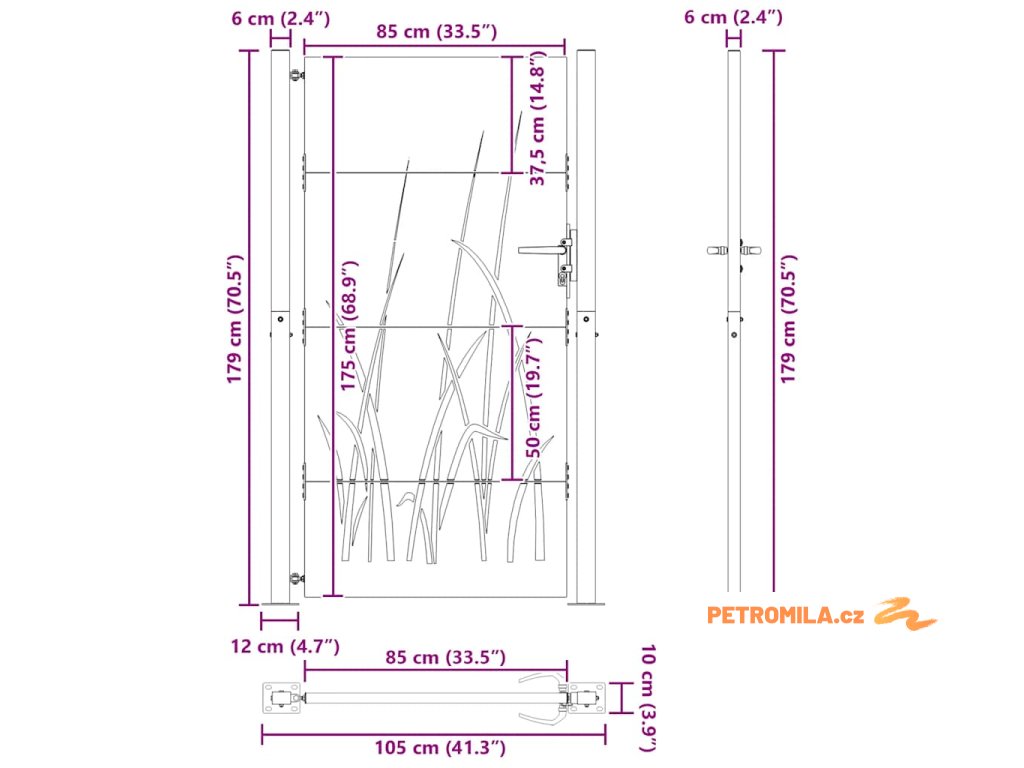 - Rozměry panelu brány: 85 x 175 cm (Š x V)