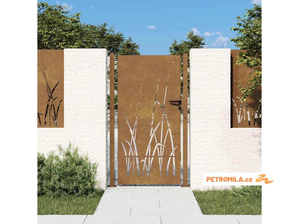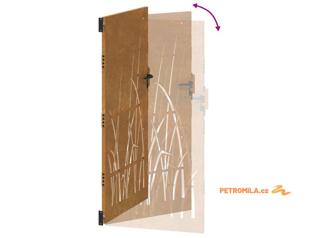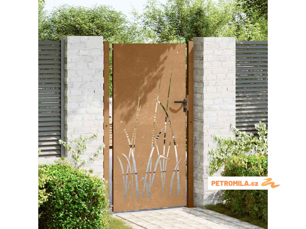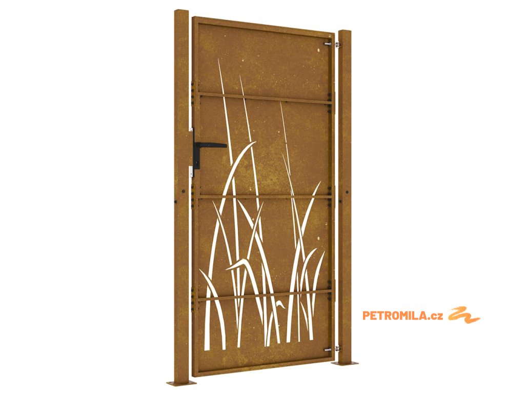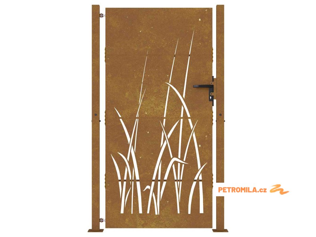 Zahradní branka 100 x 175 cm z corten oceli, design s trávou