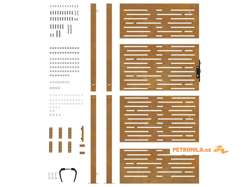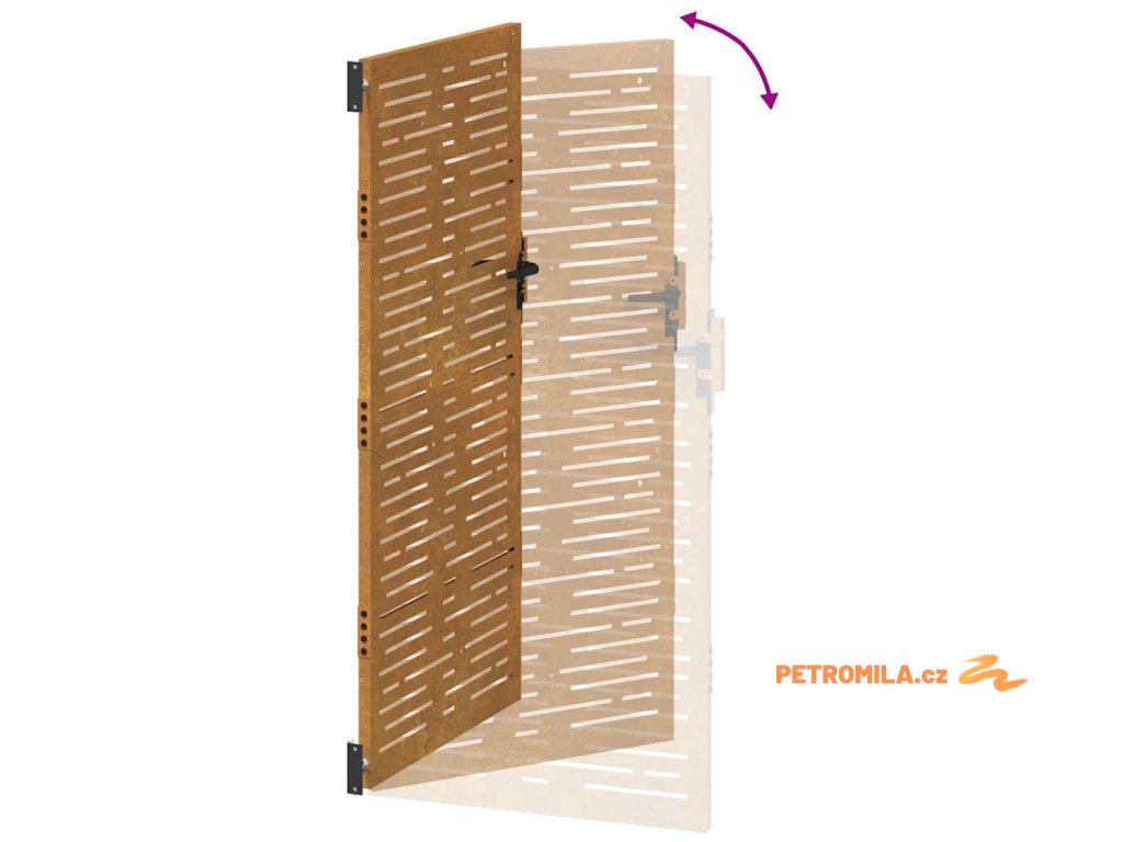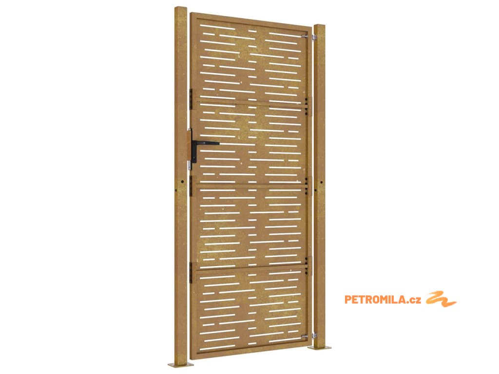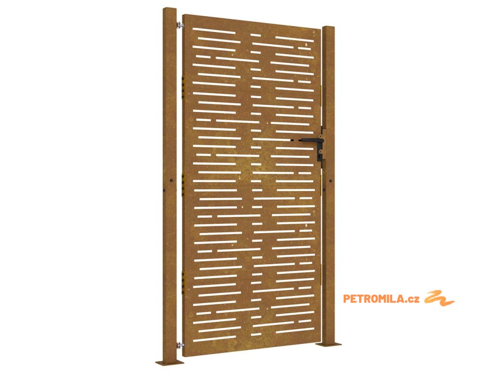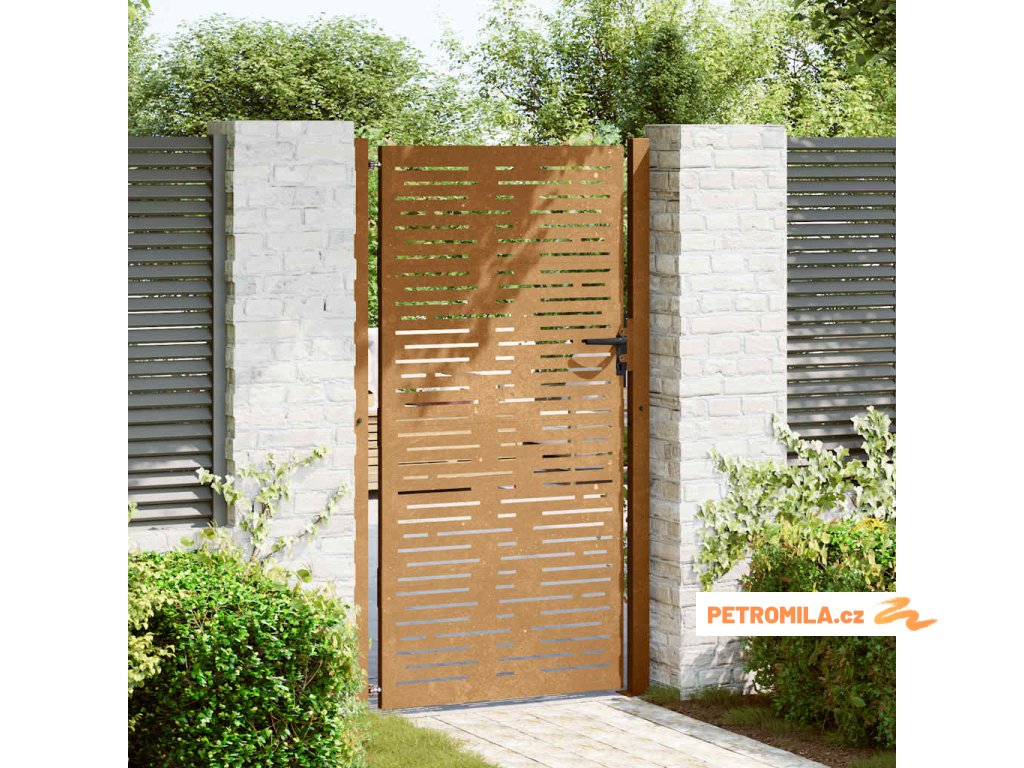 - Materiál s dlouhou životností: Kovová branka je vyrobená z cortenové oceli. Cortenová ocel, také známá jako povětrnostně odolná ocel. Je ze své podstaty antikorozní. Při prvním vystavení atmosférickým podmínkám se na ní vytvoří rezavá ochranná vrstva proti korozi. Nemusíte ji tedy natírat. Tím ušetříte náklady na údržbu a opravy. Výrazný hnědý odstín cortenové oceli jistě upoutá pozornost. Povětrnostně odolná ocel je výjimečně odolná a obstojí ve zkoušce času.