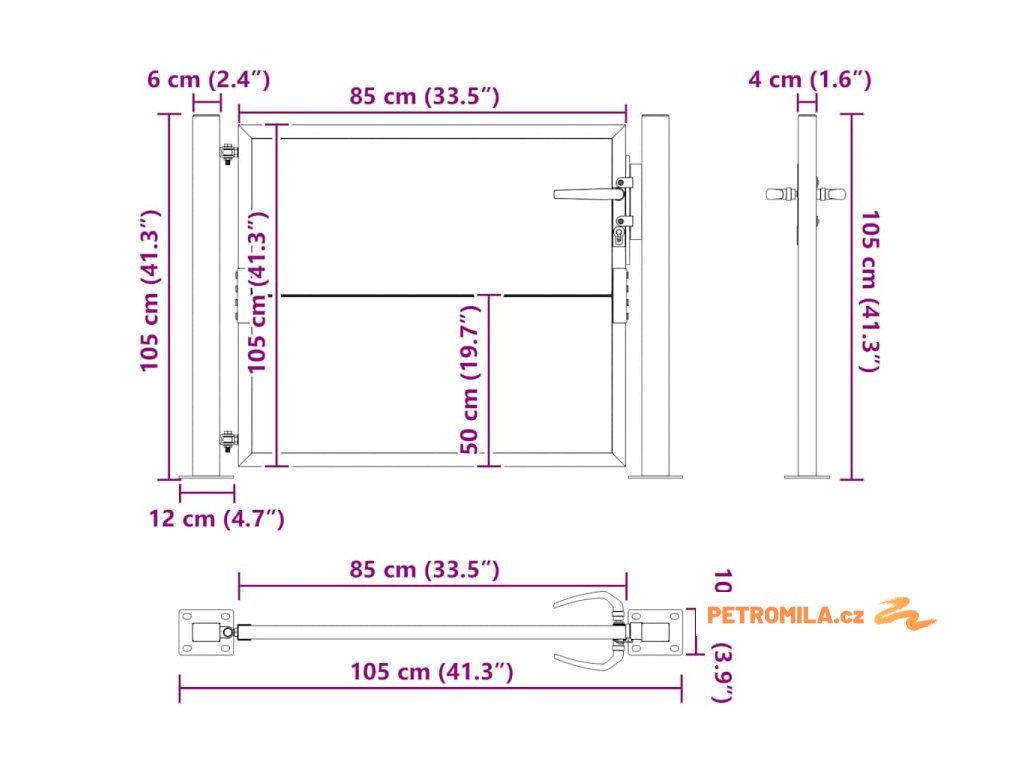 - Snadná montáž: Vstupní branka je dodávána se dvěma sloupky s přírubami a montážním příslušenstvím pro snadnou instalaci.