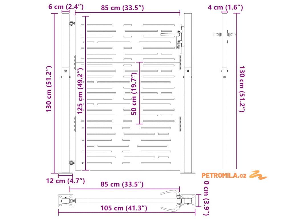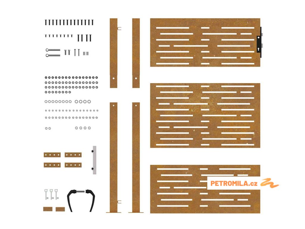 - Materiál s dlouhou životností: Kovová branka je vyrobená z cortenové oceli. Cortenová ocel, také známá jako povětrnostně odolná ocel. Je ze své podstaty antikorozní. Při prvním vystavení atmosférickým podmínkám se na ní vytvoří rezavá ochranná vrstva proti korozi. Nemusíte ji tedy natírat. Tím ušetříte náklady na údržbu a opravy. Výrazný hnědý odstín cortenové oceli jistě upoutá pozornost. Povětrnostně odolná ocel je výjimečně odolná a obstojí ve zkoušce času.