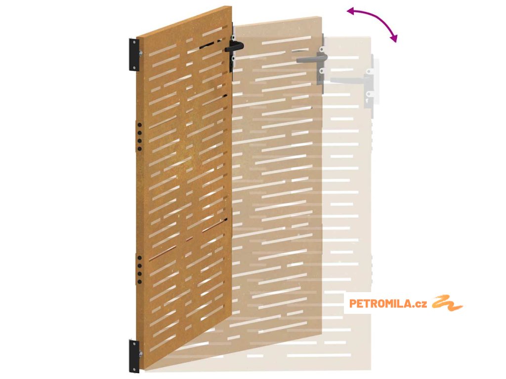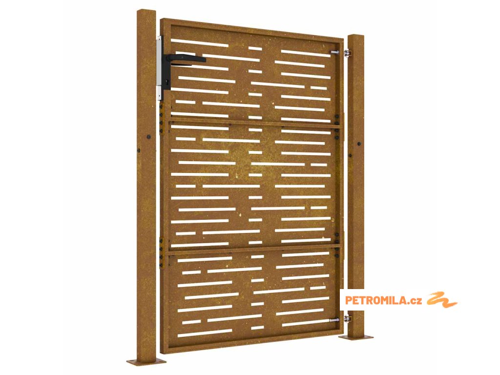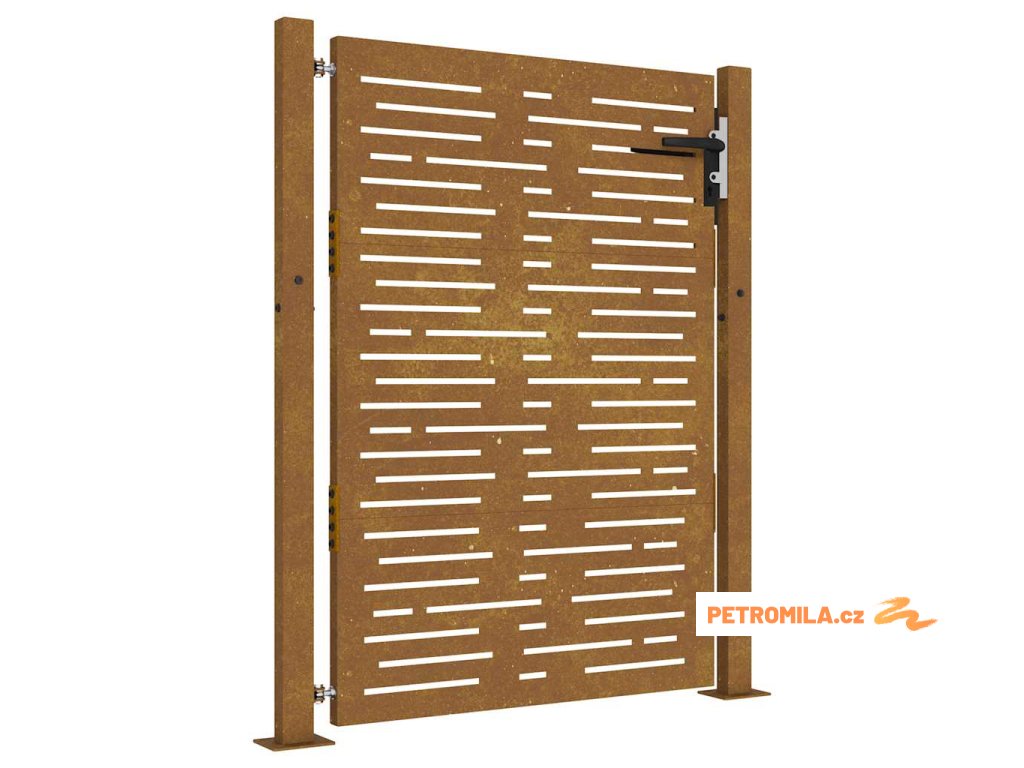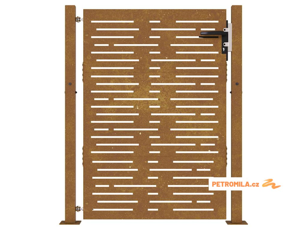 Zahradní branka 105 x 130 cm cortenová ocel Pruhy