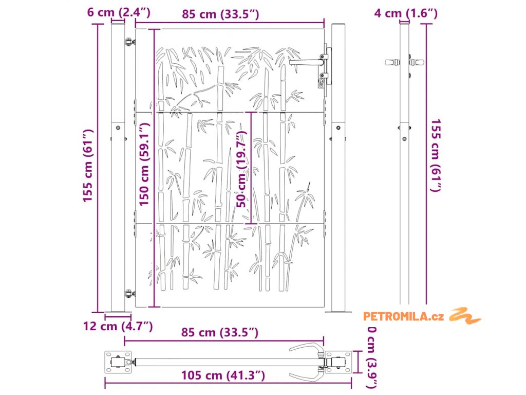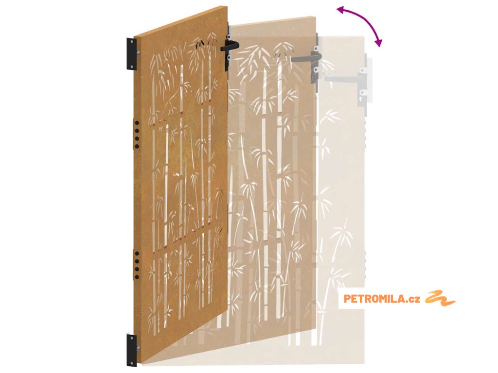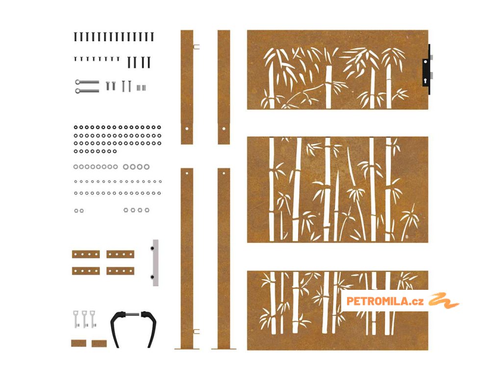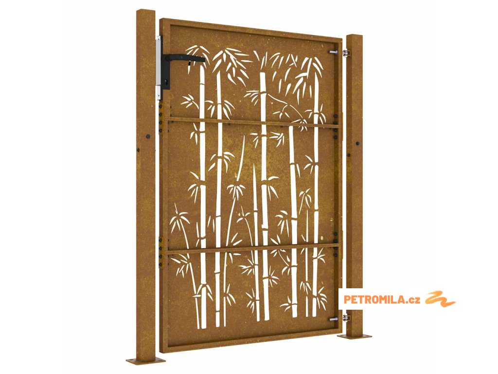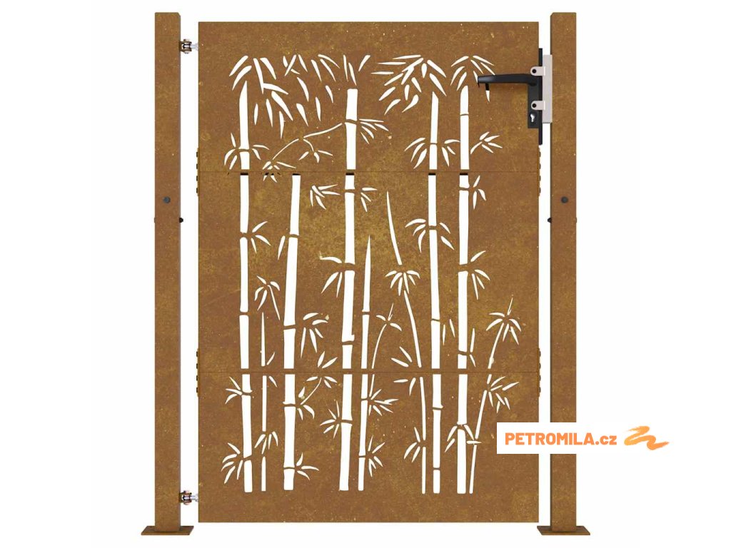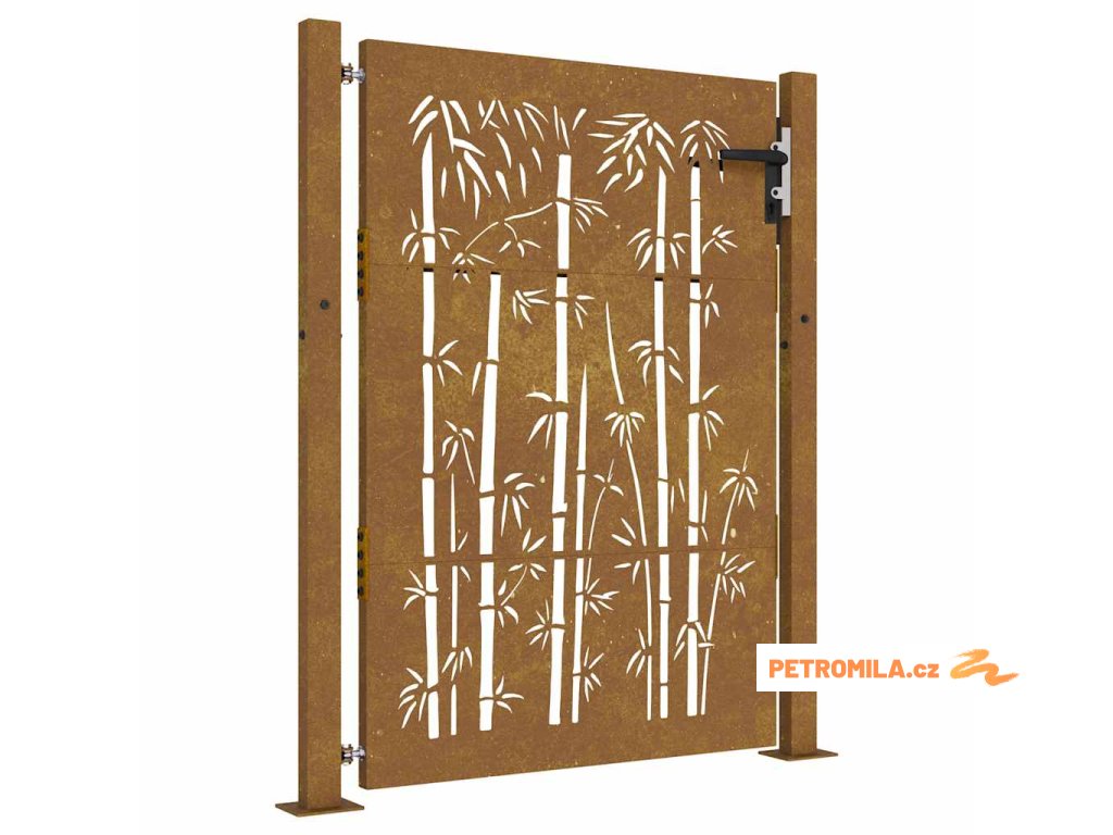 Zahradní branka 105 x 155 cm corten ocel bambusový design