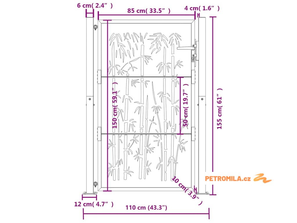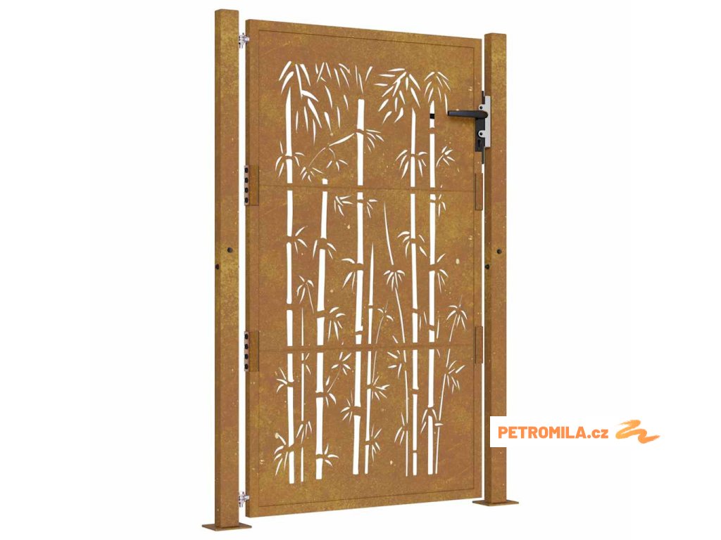 Zahradní branka 105 x 155 cm corten ocel bambusový design