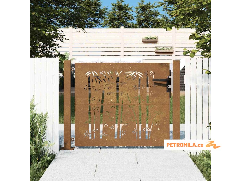 Zahradní branka 105 x 80 cm cortenová ocel Bambus