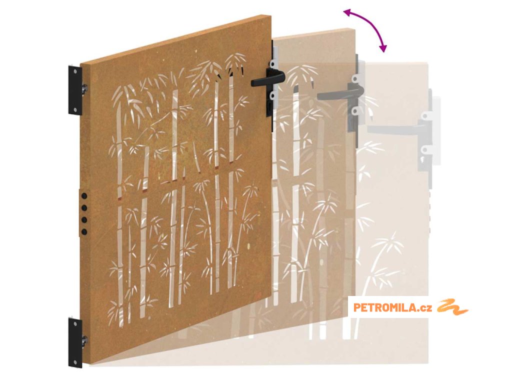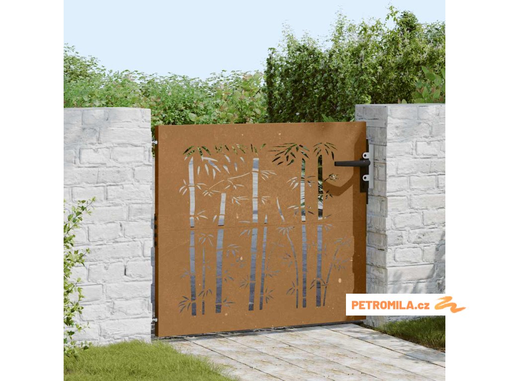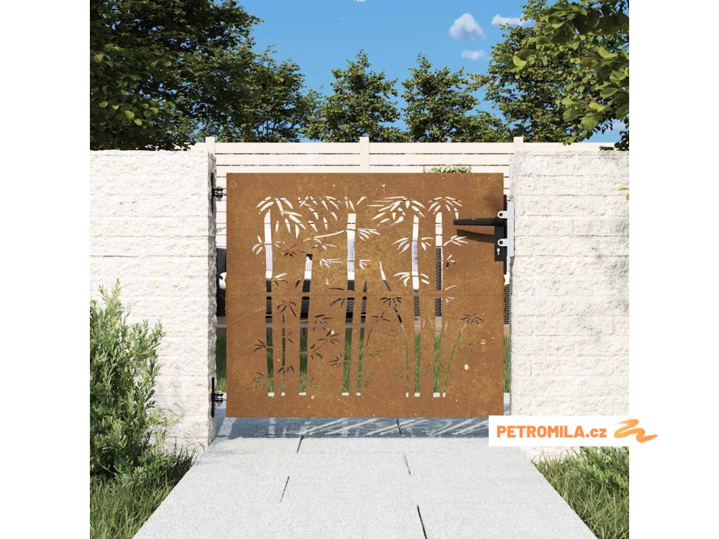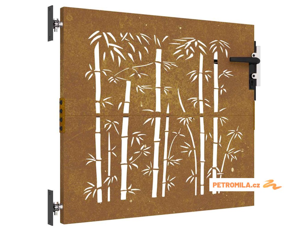 Zahradní branka 85 x 100 cm cortenová ocel Bambus
