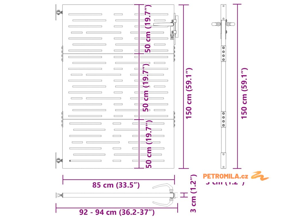 - Celkové rozměry: 85 x 3 x 150 cm (Š x H x V)