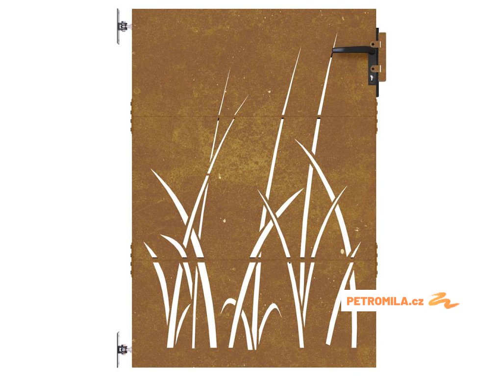 Zahradní branka 85 x 150 cm z cortenové oceli, design s trávou