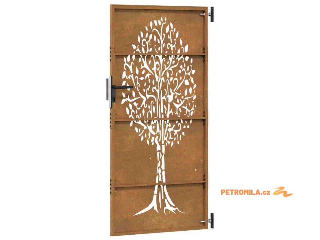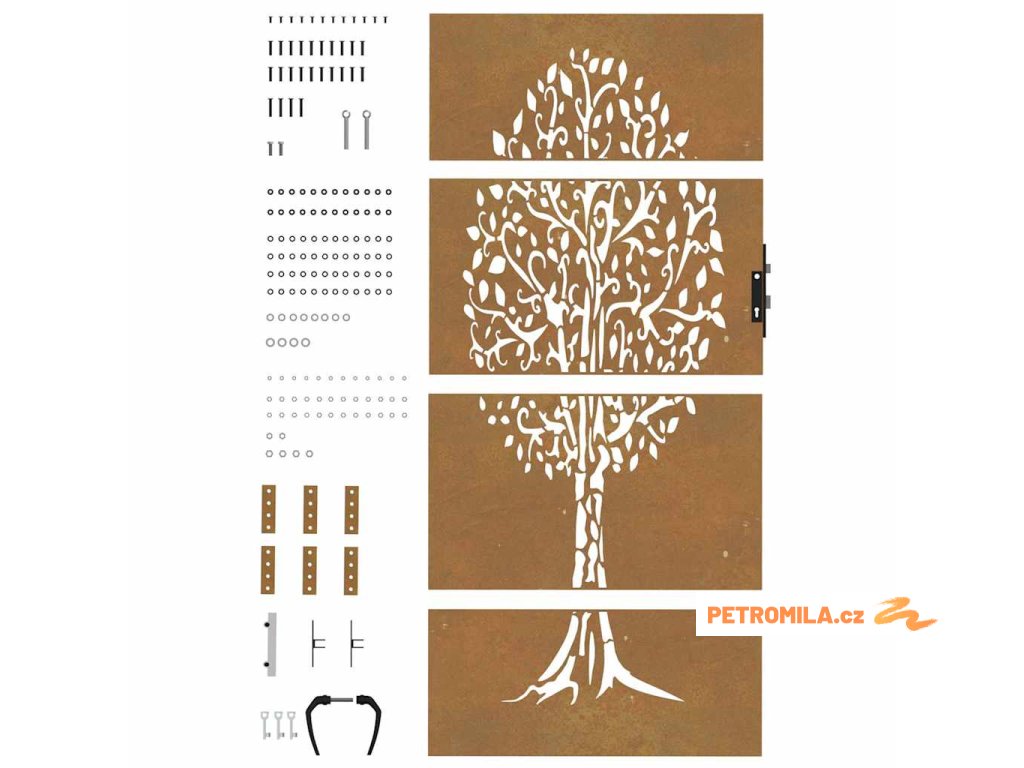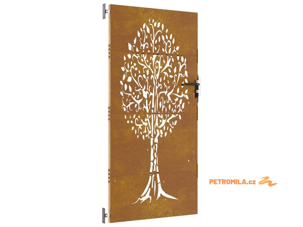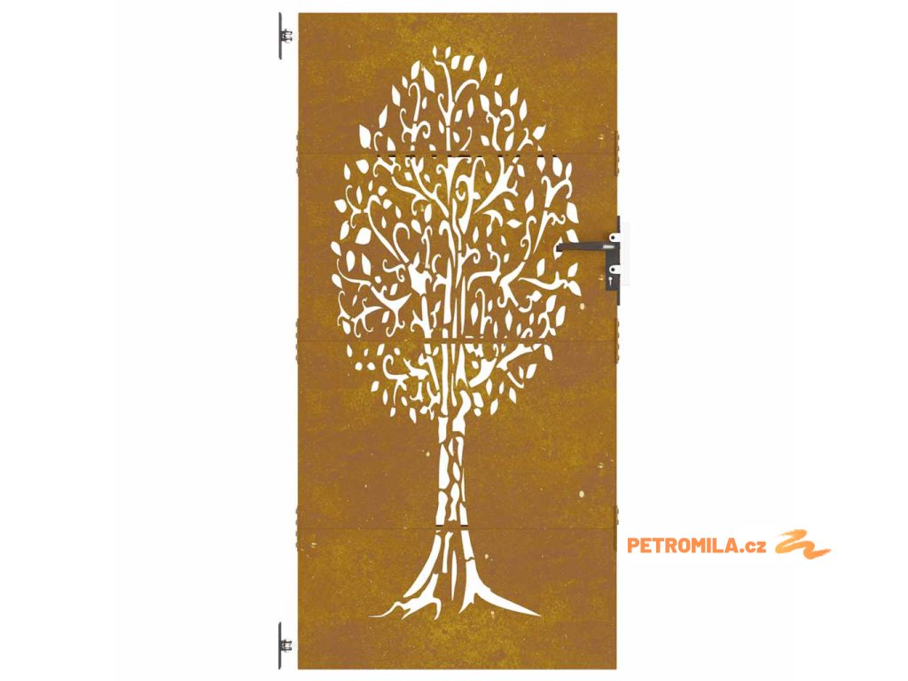 Zahradní branka 85 x 200 cm cortenová ocel Strom