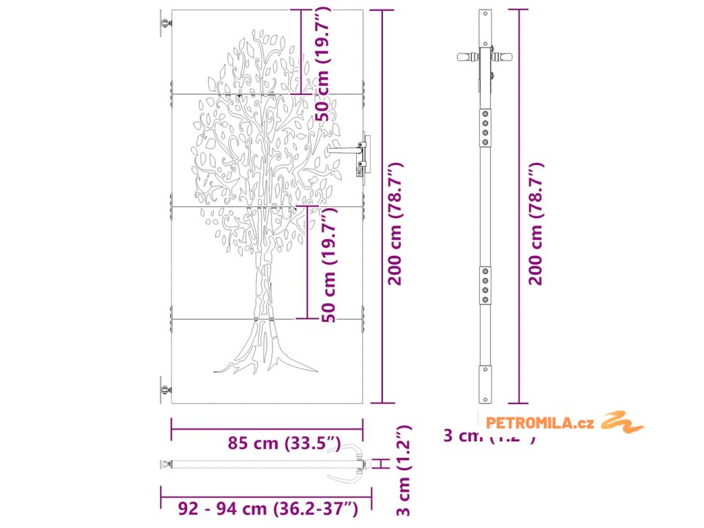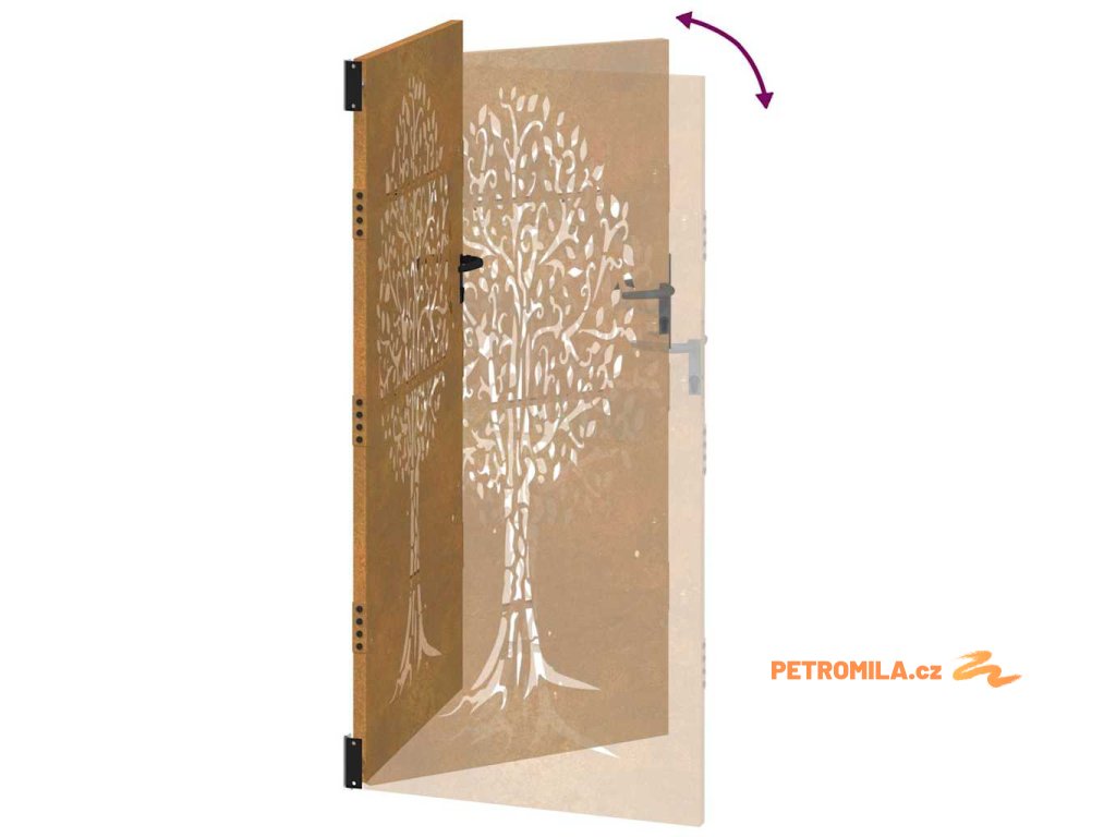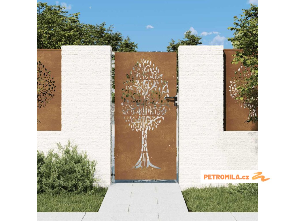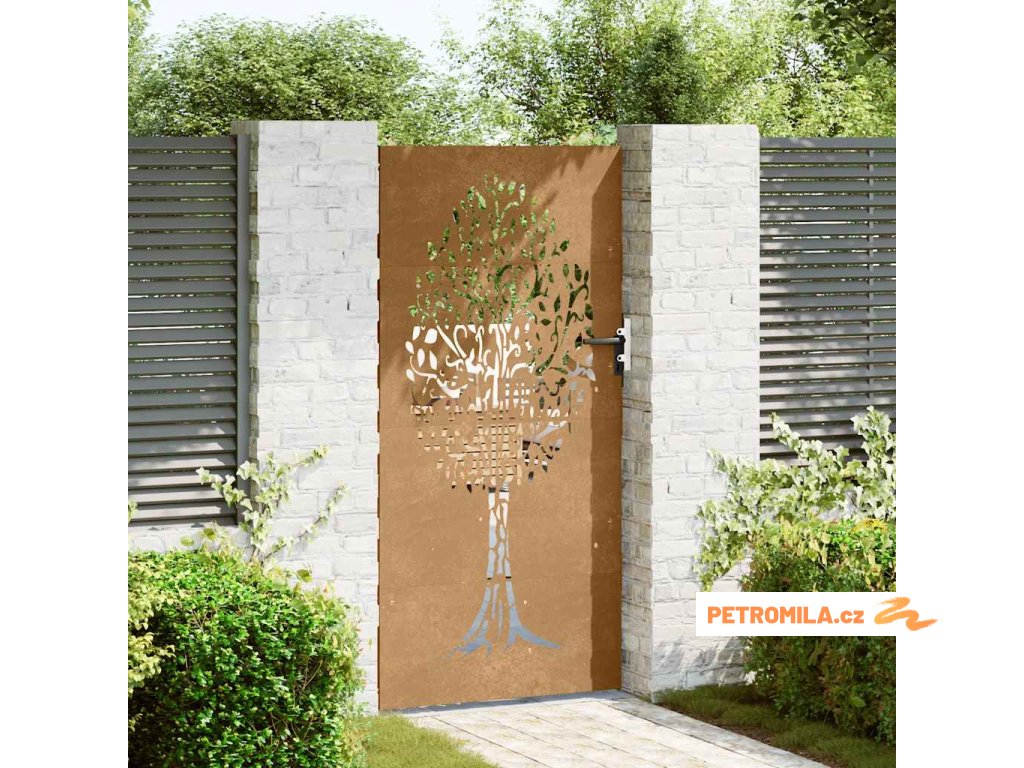Zahradní branka 85 x 200 cm cortenová ocel Strom